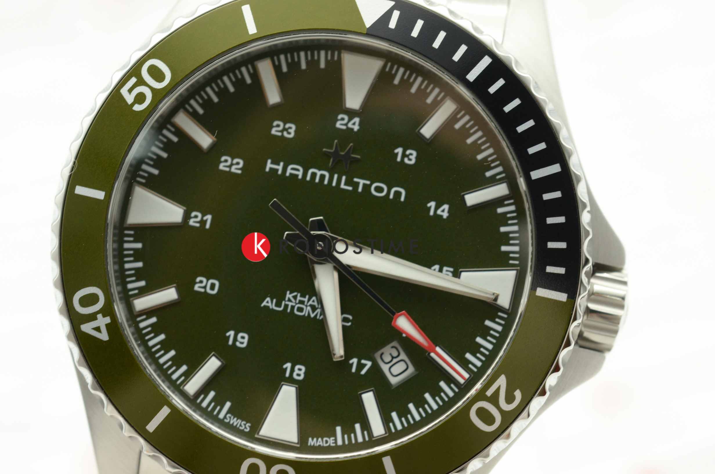 Мужские механические швейцарские часы Hamilton Khaki Navy Scuba Auto H82375161, автоматический механизм с высокой точностью. Сапфировое стеклоСапфировое стеклоПрочный и надёжный материал из кристалла сапфира синтетического происхождения, характеризующийся особой твёрдостью и устойчивостью к царапинам и повреждениям. устойчивое к появлению царапин, обладающее высокой прозрачностью. Класс водозащиты: 100 метров, позволит плавать, нырять и заниматься другими водными видами спорта. Корпус часов изготовлен из стали. Стрелки и метки с люминесцентным покрытиемЛюминесцентное покрытиеПозволяет считывать показания времени в темноте. Производители наносят на стрелки, часовые индексы, безель или поверхность циферблата светонакопительный состав, дающий холодное свечение.. Стальной браслет на раскладной застёжкеРаскладная застёжкаТакой тип застёжки используется только на браслетах из металла. Она никогда не раскрывается полностью, происходит разделение на 2 и более частей. Раскладывающая застёжка снизит вероятность потери часов к минимуму..