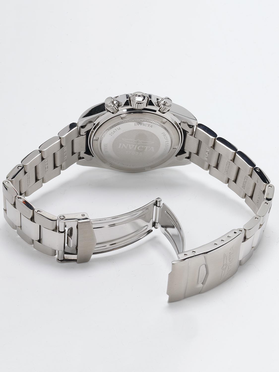Браслет выполнен из нержавеющей стали и оснащен раскладывающейся застежкойРаскладная застёжкаТакой тип застёжки используется только на браслетах из металла. Она никогда не раскрывается полностью, происходит разделение на 2 и более частей. Раскладывающая застёжка снизит вероятность потери часов к минимуму. с системой блокировки, обеспечивающей комфортную фиксацию на запястье. Часы обладают водозащитой до 200 метров, что делает их подходящими для плавания, ныряния и других водных видов спорта.