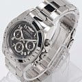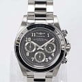 Часы оснащены функцией хронографаХронографФункция позволяет измерять отрезки времени с особой точностью: часы, минуты, секунды. Верным признаком хронографа является наличие на циферблате 3 дополнительных окошек-счётчиков. и тахиметрТахиметрРазмеченная шкала, располагается на ободке или безеле часов. Тахиметр позволяет рассчитать скорость на определённом участке пути, расстояние измеряется в километрах или милях., что позволяет точно измерять скорость и время различных событий. Циферблат защищен прочным минеральным стекломМинеральное стеклоМинеральное стекло представляет собой искусственно выращенный минерал кварца. Такое стекло отличается особой устойчивостью к повреждениям и царапинам. Уступает по некоторым качествам сапфировому стеклу., обеспечивающим высокую устойчивость к царапинам. Завинчивающаяся рифленая заводная головка с защитой гарантирует надежную герметизацию механизма, а завинчивающаяся задняя крышка добавляет дополнительную защиту от внешних воздействий.