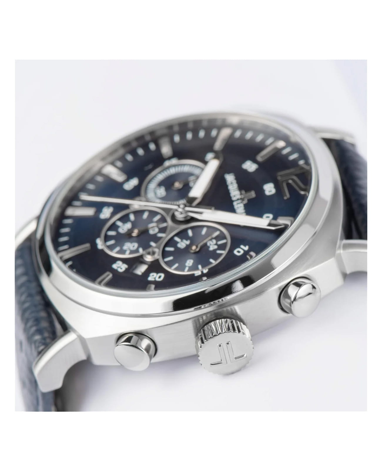 Мужские наручные часы c хронографомХронографФункция позволяет измерять отрезки времени с особой точностью: часы, минуты, секунды. Верным признаком хронографа является наличие на циферблате 3 дополнительных окошек-счётчиков. Jacques Lemans Lugano 1-1645Q, кварцевый механизм с высокой точностью. Минеральное стеклоМинеральное стеклоМинеральное стекло представляет собой искусственно выращенный минерал кварца. Такое стекло отличается особой устойчивостью к повреждениям и царапинам. Уступает по некоторым качествам сапфировому стеклу. устойчивое к мелким механическим повреждениям. Корпус часов изготовлен из стали. На циферблате три дополнительных индикатора. Стрелки и метки с люминесцентным покрытиемЛюминесцентное покрытиеПозволяет считывать показания времени в темноте. Производители наносят на стрелки, часовые индексы, безель или поверхность циферблата светонакопительный состав, дающий холодное свечение.. Окошко даты находится между 4 и 5 часами. Класс водозащиты: 100 метров, позволит плавать, нырять и заниматься другими водными видами спорта. Кожаный ремешок на стандартной застёжке.