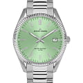 Кварцевый механизм с высокой точностью. Минеральное стеклоМинеральное стеклоМинеральное стекло представляет собой искусственно выращенный минерал кварца. Такое стекло отличается особой устойчивостью к повреждениям и царапинам. Уступает по некоторым качествам сапфировому стеклу. устойчивое к появлению царапин, обладающее высокой прозрачностью. Стрелки и метки с люминесцентным покрытиемЛюминесцентное покрытиеПозволяет считывать показания времени в темноте. Производители наносят на стрелки, часовые индексы, безель или поверхность циферблата светонакопительный состав, дающий холодное свечение.. Класс водозащиты: 100 метров, позволит плавать, нырять и заниматься другими водными видами спорта. Корпус часов изготовлен из нержавеющей стали.