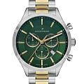 Часы Jacques Philippe Apollo JPQGC0313X8N — это гармоничное сочетание элегантного дизайна, современных швейцарских технологий и безупречного качества исполнения. Кварцевый механизм Ronda 5040.D.0001 обеспечивает точность хода. Модель оснащена точным кварцевым механизмом с функцией хронографаХронографФункция позволяет измерять отрезки времени с особой точностью: часы, минуты, секунды. Верным признаком хронографа является наличие на циферблате 3 дополнительных окошек-счётчиков. с секундомеромСекундомерСекундоме́р — прибор, способный измерять интервалы времени с точностью до долей секунды., что позволяет не только отслеживать время, но и использовать дополнительные возможности для активного образа жизни. Корпус диаметром 43 мм выполнен из прочной нержавеющей стали 316L, а сапфировое стеклоСапфировое стеклоПрочный и надёжный материал из кристалла сапфира синтетического происхождения, характеризующийся особой твёрдостью и устойчивостью к царапинам и повреждениям. надежно защищает зеленый циферблат от царапин и других повреждений. Окошко даты расположено между отметками 4 и 5 часов, что добавляет удобства в повседневном использовании. Для удобства использования в темное время суток предусмотрено люминесцентное покрытиеЛюминесцентное покрытиеПозволяет считывать показания времени в темноте. Производители наносят на стрелки, часовые индексы, безель или поверхность циферблата светонакопительный состав, дающий холодное свечение. стрелок. Браслет из нержавеющей стали с частичным золотистым PVD-покрытиемPVDУльтратонкое покрытие наносится в технике вакуумного напыления, сочетает в себе нитрид титана особой прочности со слоем золота или оксида хрома. Несёт в себе декоративную или защитную функцию. подчеркивает современный стиль изделия, а застежка «бабочка»Застёжка "бабочка"Такой вид застёжки дополняется предохранителями, помогающими избежать случайного раскрытия браслета. Обладают изящным исполнением. , раскладывающаяся при нажатии кнопок двойной блокировки, обеспечивает комфортное ношение и надежную фиксацию на запястье. Водозащита до 5 атмосфер позволяет не беспокоиться о случайных брызгах и дождевых каплях.