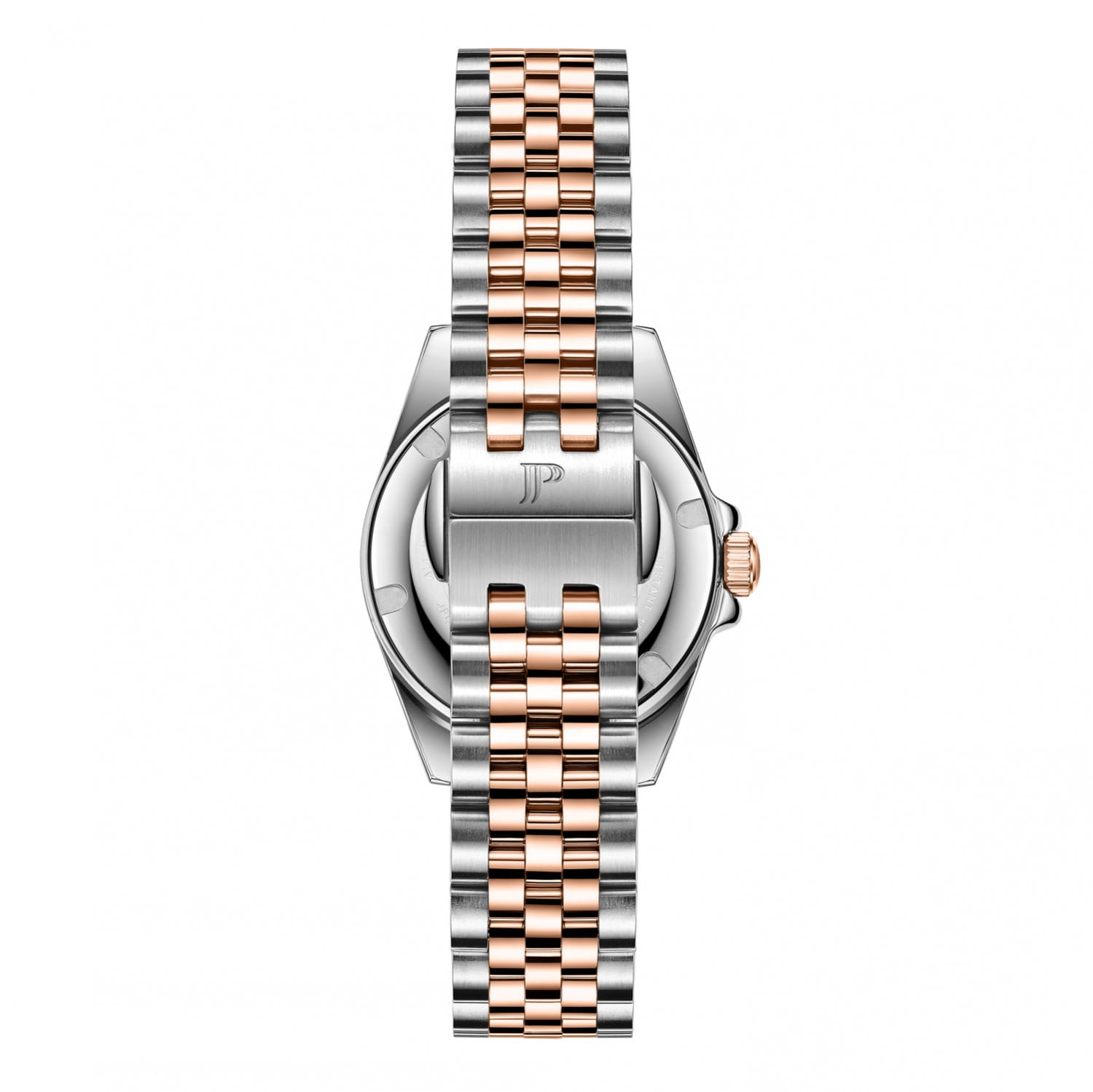 Швейцарские женские часы Jacques Philippe Adastra JPQLS587328RG кварцевый механизм с высокой точностью. Прочное сапфировое стеклоСапфировое стеклоПрочный и надёжный материал из кристалла сапфира синтетического происхождения, характеризующийся особой твёрдостью и устойчивостью к царапинам и повреждениям. устойчивое к царапинам и механическим повреждениям. Циферблат серебристого цвета украшен классическими стрелками и метками гармонично дополняющие общий дизайн модели. Элегантный корпус изготовлен из нержавеющей стали, диаметром 32 мм, что делает их устойчивыми к внешним воздействиям и придает благородный вид. Стальной браслет с частичным IP-покрытиемIP-покрытиеМетод ионного напыления. Демонстрирует повышенную устойчивость к истиранию, окислению и химическим веществам. Под воздействием высокого давления и температуры около 1500°C молекулы металла надёжно соединяются с частицами корпуса часов. на застёжке-бабочке с кнопкамиЗастёжка "бабочка"Такой вид застёжки дополняется предохранителями, помогающими избежать случайного раскрытия браслета. Обладают изящным исполнением. обеспечивает комфортное и безопасное ношение. Неподвижный рифленый безельБезельВнешний ободок, закрепляющий стекло. В спортивных часах так называется поворотное кольцо с делениями на циферблате, выполняет роль таймера – замеряет отрезки времени на шкале. Неподвижный безель – элемент декора. Однонаправленно вращающийся безель на дайверских часах позволяет фиксировать моменты погружения и выныривания на поверхность. с IP-покрытиемIP-покрытиеМетод ионного напыления. Демонстрирует повышенную устойчивость к истиранию, окислению и химическим веществам. Под воздействием высокого давления и температуры около 1500°C молекулы металла надёжно соединяются с частицами корпуса часов. цвета розового золота. Окошко даты находится в положении 3 часа. Класс водозащиты: 100 метров позволит плавать, нырять и заниматься другими водными видами спорта. Эти часы станут идеальным выбором для женщин, ценящих стиль, качество и функциональность.