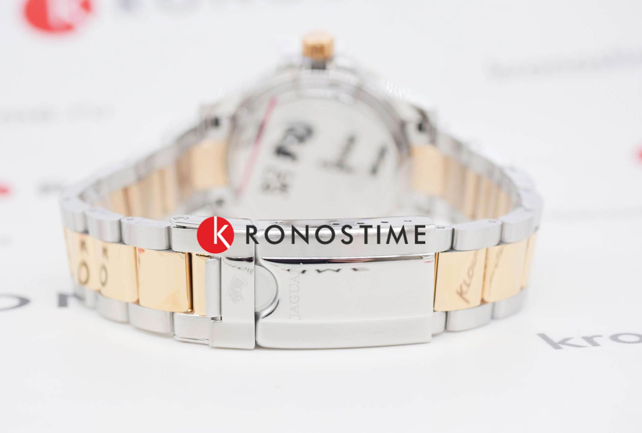Женские швейцарские часы Jaguar Couple Diver J871/2. Кварцевый швейцарский калибр Ronda 705. Сапфировое стеклоСапфировое стеклоПрочный и надёжный материал из кристалла сапфира синтетического происхождения, характеризующийся особой твёрдостью и устойчивостью к царапинам и повреждениям. устойчивое к мелким механическим повреждениям. Корпус часов изготовлен из нержавеющей стали. Стрелки и метки с люминесцентным покрытиемЛюминесцентное покрытиеПозволяет считывать показания времени в темноте. Производители наносят на стрелки, часовые индексы, безель или поверхность циферблата светонакопительный состав, дающий холодное свечение.. Окошко даты находится в положении 3 часа. Класс водозащиты: 200 метров, позволит плавать, нырять и заниматься другими водными видами спорта. Стальной браслет с частичным PVD-покрытиемPVDУльтратонкое покрытие наносится в технике вакуумного напыления, сочетает в себе нитрид титана особой прочности со слоем золота или оксида хрома. Несёт в себе декоративную или защитную функцию. на раскладной застёжкеРаскладная застёжкаТакой тип застёжки используется только на браслетах из металла. Она никогда не раскрывается полностью, происходит разделение на 2 и более частей. Раскладывающая застёжка снизит вероятность потери часов к минимуму.. Циферблат украшен 11 кристаллами в роли часовых индексов. БезельБезельВнешний ободок, закрепляющий стекло. В спортивных часах так называется поворотное кольцо с делениями на циферблате, выполняет роль таймера – замеряет отрезки времени на шкале. Неподвижный безель – элемент декора. Однонаправленно вращающийся безель на дайверских часах позволяет фиксировать моменты погружения и выныривания на поверхность. с PVD-покрытиемPVDУльтратонкое покрытие наносится в технике вакуумного напыления, сочетает в себе нитрид титана особой прочности со слоем золота или оксида хрома. Несёт в себе декоративную или защитную функцию..