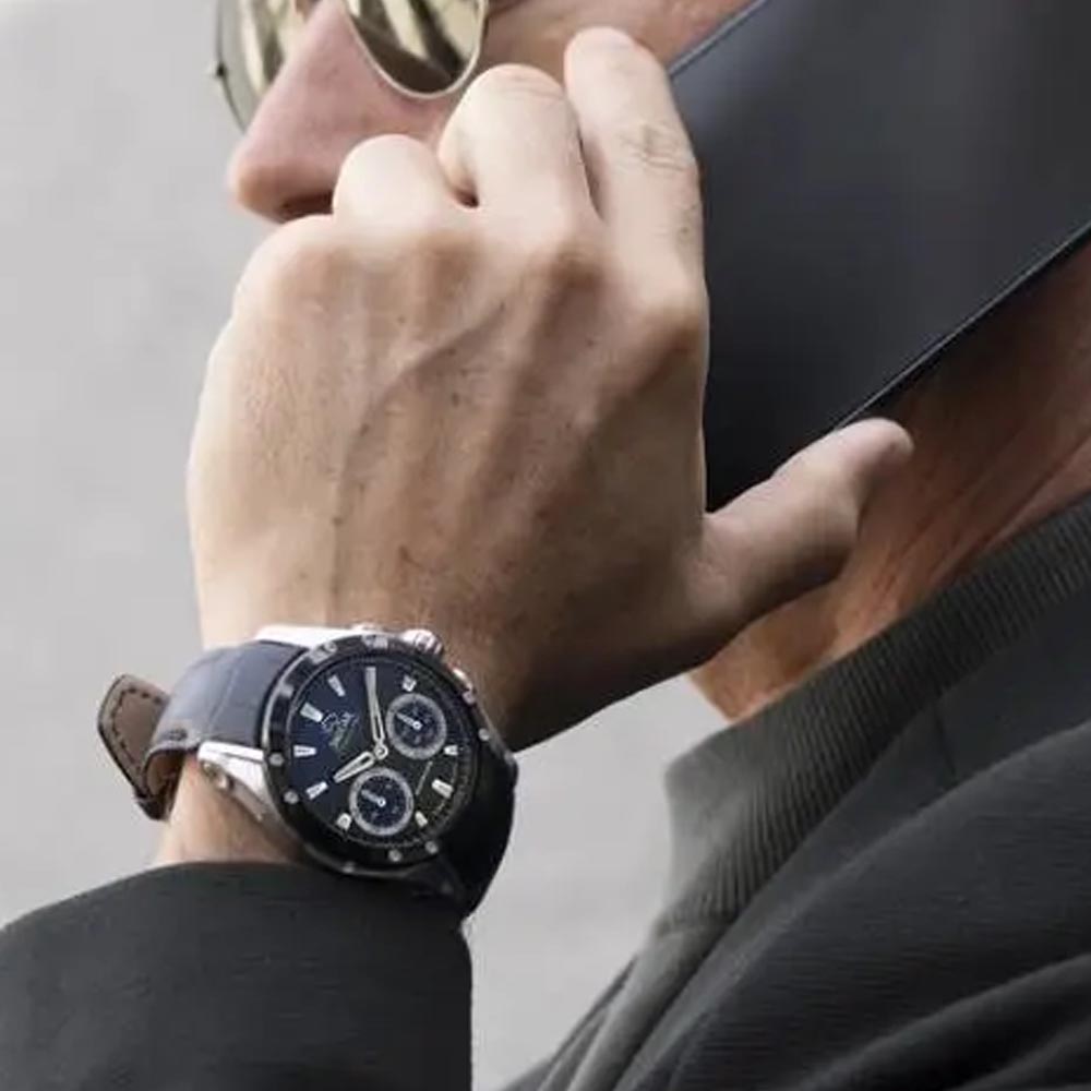 Мужские швейцарские часы Jaguar Connected J958/1. Сапфировое стеклоСапфировое стеклоПрочный и надёжный материал из кристалла сапфира синтетического происхождения, характеризующийся особой твёрдостью и устойчивостью к царапинам и повреждениям. устойчивое к мелким механическим повреждениям. Корпус часов изготовлен из нержавеющей стали. Стрелки и метки с люминесцентным покрытиемЛюминесцентное покрытиеПозволяет считывать показания времени в темноте. Производители наносят на стрелки, часовые индексы, безель или поверхность циферблата светонакопительный состав, дающий холодное свечение.. Календарь находится в положении 8 часов. Класс водозащиты: 100 метров, позволит плавать, нырять и заниматься другими водными видами спорта. Кожаный ремешок на стандартной застёжке. БезельБезельВнешний ободок, закрепляющий стекло. В спортивных часах так называется поворотное кольцо с делениями на циферблате, выполняет роль таймера – замеряет отрезки времени на шкале. Неподвижный безель – элемент декора. Однонаправленно вращающийся безель на дайверских часах позволяет фиксировать моменты погружения и выныривания на поверхность. с PVD-покрытиемPVDУльтратонкое покрытие наносится в технике вакуумного напыления, сочетает в себе нитрид титана особой прочности со слоем золота или оксида хрома. Несёт в себе декоративную или защитную функцию.. За точный ход работы часов, из коллекции Connected, отвечает кварцевый гибридный механизм швейцарского производства со Смарт-Модулем. Данный тип механизма обеспечивает возможность подключить часы к телефону через Bluetooth и управлять большим рядом дополнительных функций на выбор с помошью приложения Jaguar. Дополнительные функции: отображение даты и дня недели, секундомер, таймер, GMT, шагомер, поиск телефона, включение/выключение звука телефона при входящих вызовах, переключение музыки, вибро-уведомления.