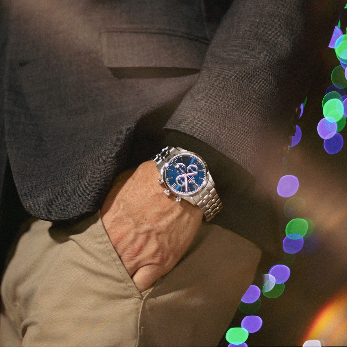 Мужские швейцарские часы-хронографХронографФункция позволяет измерять отрезки времени с особой точностью: часы, минуты, секунды. Верным признаком хронографа является наличие на циферблате 3 дополнительных окошек-счётчиков. Jaguar Acamar J963/2. Кварцевый швейцарский калибр Ronda 5030D. Сапфировое стеклоСапфировое стеклоПрочный и надёжный материал из кристалла сапфира синтетического происхождения, характеризующийся особой твёрдостью и устойчивостью к царапинам и повреждениям. устойчивое к мелким механическим повреждениям. Корпус и браслет часов изготовлены из нержавеющей стали. Окошко даты находится в положении 6 часов. Класс водозащиты: 100 метров, позволит плавать, нырять и заниматься другими водными видами спорта. Стальной браслет на раскладной застёжкеРаскладная застёжкаТакой тип застёжки используется только на браслетах из металла. Она никогда не раскрывается полностью, происходит разделение на 2 и более частей. Раскладывающая застёжка снизит вероятность потери часов к минимуму..