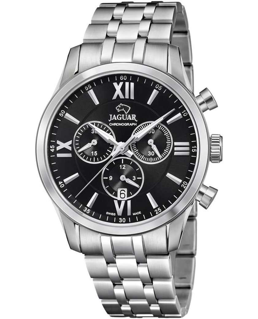 Мужские швейцарские часы-хронографХронографФункция позволяет измерять отрезки времени с особой точностью: часы, минуты, секунды. Верным признаком хронографа является наличие на циферблате 3 дополнительных окошек-счётчиков. Jaguar Acamar J963/4. Кварцевый швейцарский калибр Ronda 5030D. Сапфировое стеклоСапфировое стеклоПрочный и надёжный материал из кристалла сапфира синтетического происхождения, характеризующийся особой твёрдостью и устойчивостью к царапинам и повреждениям. устойчивое к мелким механическим повреждениям. Корпус и браслет часов изготовлены из нержавеющей стали. Окошко даты находится в положении 6 часов. Класс водозащиты: 100 метров, позволит плавать, нырять и заниматься другими водными видами спорта. Стальной браслет на раскладной застёжкеРаскладная застёжкаТакой тип застёжки используется только на браслетах из металла. Она никогда не раскрывается полностью, происходит разделение на 2 и более частей. Раскладывающая застёжка снизит вероятность потери часов к минимуму..