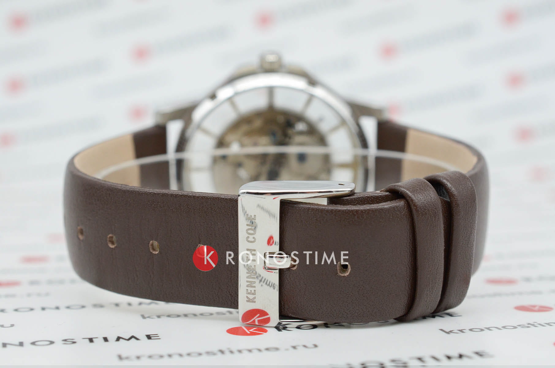 Мужские автоматические часы Kenneth Cole KC50227004 — это стильный и современный аксессуар, подчеркивающий индивидуальность владельца. Корпус диаметром 43 мм выполнен из нержавеющей стали, а циферблат серебристого цвета оснащён люминесцентным покрытиемЛюминесцентное покрытиеПозволяет считывать показания времени в темноте. Производители наносят на стрелки, часовые индексы, безель или поверхность циферблата светонакопительный состав, дающий холодное свечение. и оформлен в стиле скелетон, позволяя наблюдать за работой автоматического механизма. Циферблат защищён минеральным стекломМинеральное стеклоМинеральное стекло представляет собой искусственно выращенный минерал кварца. Такое стекло отличается особой устойчивостью к повреждениям и царапинам. Уступает по некоторым качествам сапфировому стеклу.. Часы оснащены кожаным ремешком коричневого цвета с классической пряжкой. Водонепроницаемость 30 м позволяет использовать часы в повседневных условиях, защищая от случайных брызг и капель дождя. Идеальный выбор для тех, кто ценит стиль и точность.