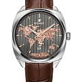 Мужские часы Космос D 113.12.34 из коллекции ЦУП станут идеальным аксессуаром для тех, кто ценит историю и традиции российского часового производства. Механический механизм с автоподзаводом TMI, произведенный японской компанией Seiko, гарантирует высокую точность хода и долговечность работы. Прозрачная задняя крышка, крепящаяся на четырех винтах, позволяет рассмотреть механизм во всех подробностях, включая ротор автоподзавода, украшенный изображением космонавта. Корпус часов выполнен из нержавеющей стали, изображение очертаний континентов защищено прочным минеральным стекломМинеральное стеклоМинеральное стекло представляет собой искусственно выращенный минерал кварца. Такое стекло отличается особой устойчивостью к повреждениям и царапинам. Уступает по некоторым качествам сапфировому стеклу., устойчивым к царапинам. Окошко даты расположено в положении 6 часа, а стрелки имеют люминесцентное покрытиеЛюминесцентное покрытиеПозволяет считывать показания времени в темноте. Производители наносят на стрелки, часовые индексы, безель или поверхность циферблата светонакопительный состав, дающий холодное свечение., что позволяет определять время даже в темноте. Ремешок изготовлен из натуральной кожи коричневого цвета с классической застежкой, обеспечивая комфорт при ношении Часы обладают водозащитой до 10 атм (WR100), что позволит использовать их при плавании и других водных видах спорта.