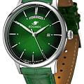Мужские наручные часы Космос Орион K 011.17.38 — это сочетание традиций часового искусства 60-70-х годов и футуристического дизайна, вдохновленного космическими исследованиями. Они не только служат напоминанием о прошлом, но и побуждают задуматься о будущем, позволяя наслаждаться качеством и смыслом, вложенными в каждую деталь. Полированный корпус часов выполнен в виде силуэта летающей тарелки благодаря выпуклым формам стекла и нижней части корпуса. Стальные ушки, которые напоминают опоры летающей тарелки, завершает общий образ. На задней крышке часов выгравирован фантазийный сюжет – космическая станция будущего. Зеленый циферблат, выполненный в ретро-стиле, имеет выгнутые края, что требует использования сложной технологии производства. Такой дизайн был характерен для часов прошлых эпох. Секундная стрелка, имеющая изогнутую форму, идеально соответствует контуру циферблата. Выпуклый градиентный циферблат с шлифовкой, напоминающей солнечные лучи, украшен вручную изготовленными индексами, которые надежно крепятся на двух штифтах. Часовая и минутная стрелки, а также линия по краю циферблата, напоминающая ореол Земли, имеют люминесцентное покрытиеЛюминесцентное покрытиеПозволяет считывать показания времени в темноте. Производители наносят на стрелки, часовые индексы, безель или поверхность циферблата светонакопительный состав, дающий холодное свечение., которое светится в темноте, создавая впечатляющий визуальный эффект. В верхней части циферблата расположено окошко для отображения дня недели на английском языке, а индикаторы даты и дня недели дополнительно украшены фасочками, что придает им элегантный вид. Форма минерального стеклаМинеральное стеклоМинеральное стекло представляет собой искусственно выращенный минерал кварца. Такое стекло отличается особой устойчивостью к повреждениям и царапинам. Уступает по некоторым качествам сапфировому стеклу. также тщательно продумана, оно изогнуто как снаружи, так и изнутри. Это позволяет избежать искажений изображения на циферблате, в отличие от традиционного стекла с прямой внутренней частью, создающего эффект линзы. Ремешок из натуральной кожи зеленого цвета прекрасно дополняет часы. Также имеется возможность приобрести дополнительные ремни и браслеты миланского плетения, которые можно легко менять благодаря специальным крепежам. Заводная головка, застежка и ремешок украшены фирменным логотипом, подчеркивающим индивидуальность и стиль модели.
