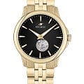 Мужские наручные часы Космос Телескоп K 304.20.31 — это уникальная лимитированная серия под названием Телескоп, посвящена аппарату приоткрывающего взгляду бескрайние дали космического пространства. Апертура открытого баланса модели по форме напоминает круглую линзу телескопа. Сквозь это окошко, расположенное на черном циферблате, также можно увидеть много интересного: ту самую систему «баланс-спираль» автоматического механизма, которая отвечает за точность хода. Корпус часов выполнен из нержавеющей стали с PVDPVDУльтратонкое покрытие наносится в технике вакуумного напыления, сочетает в себе нитрид титана особой прочности со слоем золота или оксида хрома. Несёт в себе декоративную или защитную функцию. покрытием, классической круглой формы и достаточно тонкий для механических моделей. Это стало возможным благодаря использованию механизма Miyota, калибр 9029, с высотой всего 3.9 мм. Циферблат декорирован вертикальной текстурой в ретро-стиле, по которой движутся крупные часовая и минутная стрелки, имеющие люминесцентное покрытиеЛюминесцентное покрытиеПозволяет считывать показания времени в темноте. Производители наносят на стрелки, часовые индексы, безель или поверхность циферблата светонакопительный состав, дающий холодное свечение., позволяющее определять время даже в темноте. Циферблат защищен прочным сапфировым стеклом с антибликовым покрытиемСапфировое стеклоПрочный и надёжный материал из кристалла сапфира синтетического происхождения, характеризующийся особой твёрдостью и устойчивостью к царапинам и повреждениям., обеспечивающим отличную читаемость показаний в любых условиях. Прозрачная задняя крышка, закрепленная на четырех винтах, демонстрирует механизм и содержит выгравированный индивидуальный номер экземпляра хх/50, отражающий лимитированный тираж всего в 50 штук. Браслет изготовлен из нержавеющей стали с PVDPVDУльтратонкое покрытие наносится в технике вакуумного напыления, сочетает в себе нитрид титана особой прочности со слоем золота или оксида хрома. Несёт в себе декоративную или защитную функцию. покрытием и оснащен удобной застёжкой «бабочка» с кнопкамиЗастёжка "бабочка"Такой вид застёжки дополняется предохранителями, помогающими избежать случайного раскрытия браслета. Обладают изящным исполнением. , которая сводит к минимуму вероятность потери. Модель Телескоп сочетает классический дизайн и универсальность, прекрасно подходя как к деловому костюму, так и к более повседневным образам.