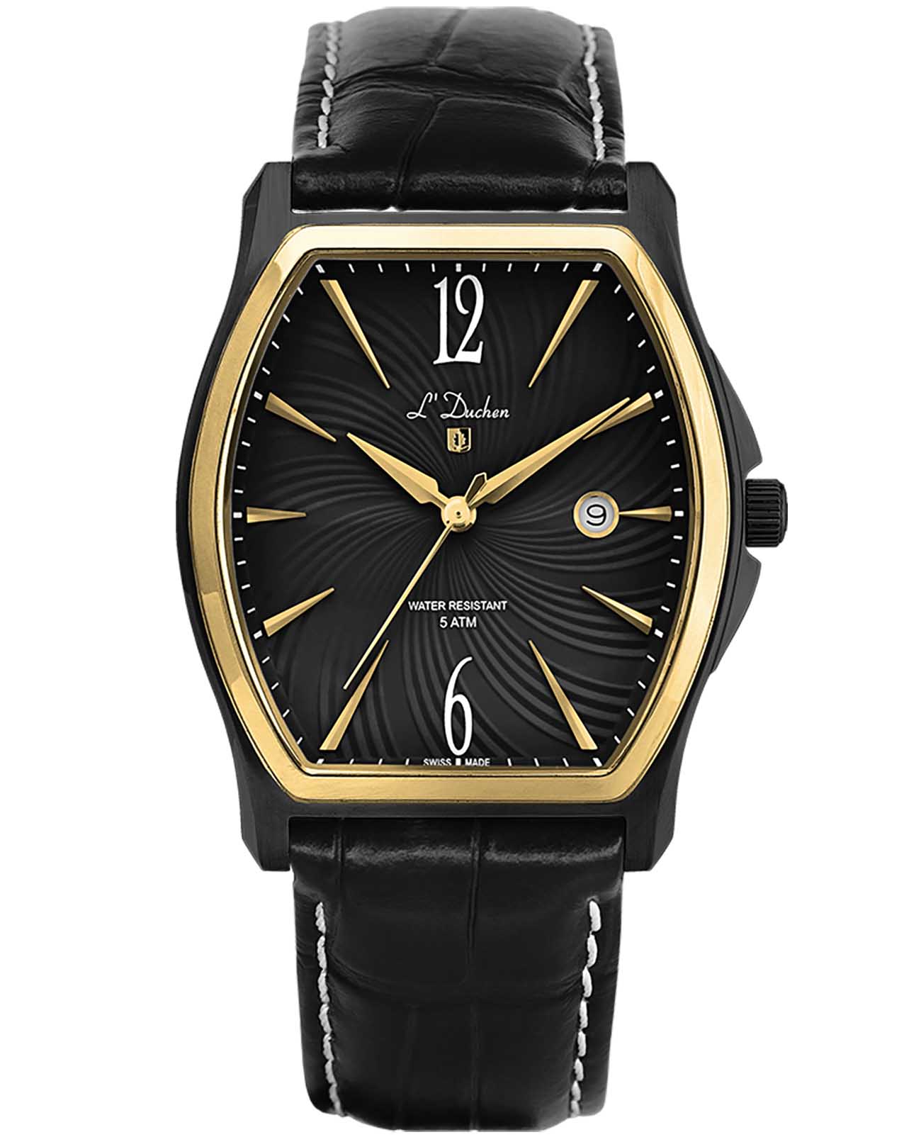 Мужские швейцарские L'Duchen Muse D 301.81.21, кварцевый механизм с высокой точностью. Сапфировое стеклоСапфировое стеклоПрочный и надёжный материал из кристалла сапфира синтетического происхождения, характеризующийся особой твёрдостью и устойчивостью к царапинам и повреждениям. устойчивое к появлению царапин, обладающее высокой прозрачностью. Корпус часов выполнен из нержавеющей стали с PVD-покрытиемPVDУльтратонкое покрытие наносится в технике вакуумного напыления, сочетает в себе нитрид титана особой прочности со слоем золота или оксида хрома. Несёт в себе декоративную или защитную функцию.. Класс водозащиты: 50 метров, позволит защитить корпус от случайных брызг или капель дождя. Кожаный ремешок на застёжке «бабочка» с кнопкамиЗастёжка "бабочка"Такой вид застёжки дополняется предохранителями, помогающими избежать случайного раскрытия браслета. Обладают изящным исполнением. .