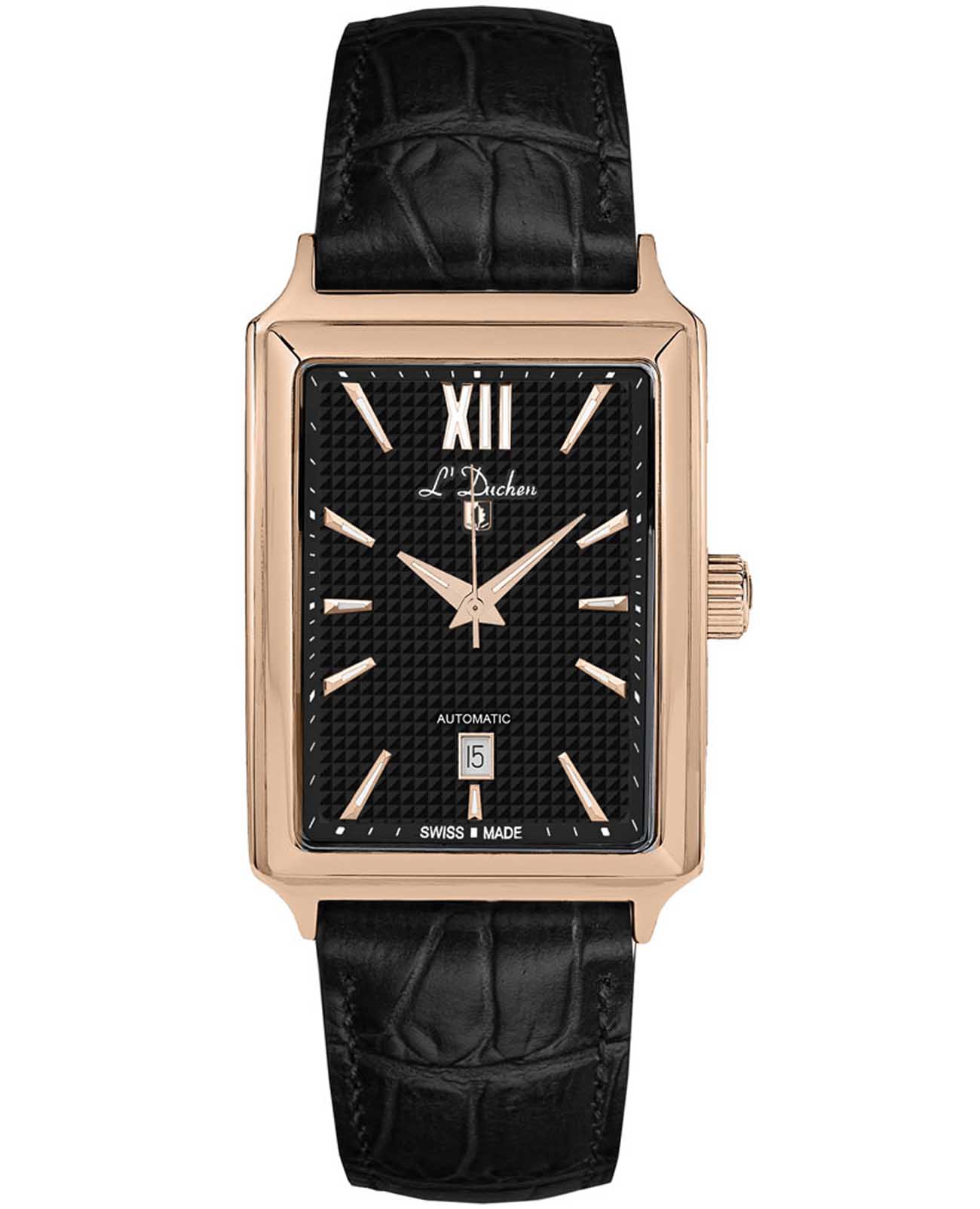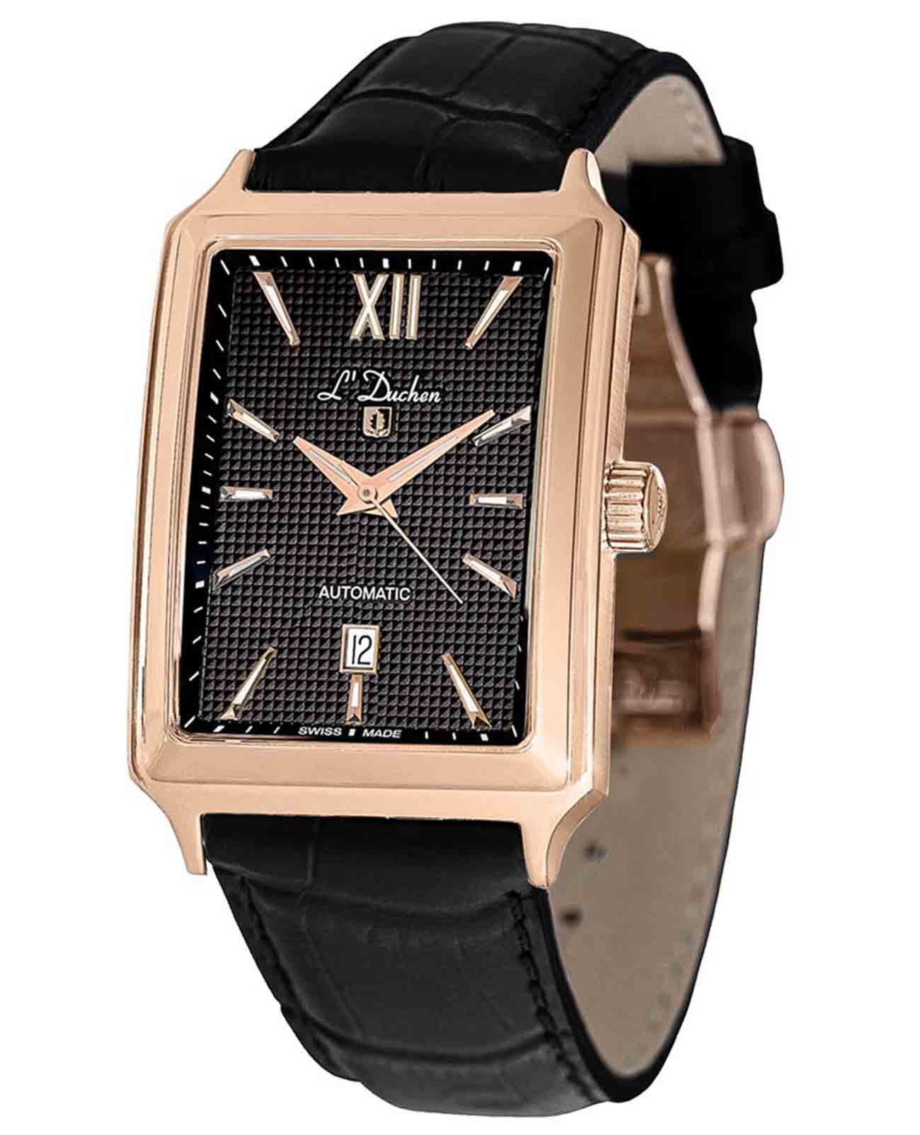 Мужские швейцарские механические часы с автоподзаводом L'Duchen Adventure Automatic D 633.41.31. Сапфировое стеклоСапфировое стеклоПрочный и надёжный материал из кристалла сапфира синтетического происхождения, характеризующийся особой твёрдостью и устойчивостью к царапинам и повреждениям. устойчивое к появлению царапин, обладающее высокой прозрачностью. Корпус часов выполнен из нержавеющей стали с PVD-покрытиемPVDУльтратонкое покрытие наносится в технике вакуумного напыления, сочетает в себе нитрид титана особой прочности со слоем золота или оксида хрома. Несёт в себе декоративную или защитную функцию.. Стрелки с люминесцентным покрытиемЛюминесцентное покрытиеПозволяет считывать показания времени в темноте. Производители наносят на стрелки, часовые индексы, безель или поверхность циферблата светонакопительный состав, дающий холодное свечение.. Окошко даты находится в положении 6 часов. Класс водозащиты: 50 метров, позволит защитить корпус от случайных брызг или капель дождя. Кожаный ремешок на застёжке «бабочка» с кнопкамиЗастёжка "бабочка"Такой вид застёжки дополняется предохранителями, помогающими избежать случайного раскрытия браслета. Обладают изящным исполнением. .