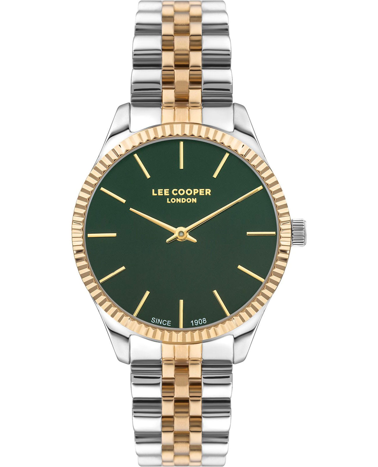 Женские часы Lee Cooper LC07682.270 выполнены в классическом стиле и отличаются лаконичным дизайном и надёжностью. Модель оснащена кварцевым механизмом , обеспечивающим точность хода и минимальное обслуживание. Корпус круглой формы имеет размер 35 мм, изготовлен из металла с двухцветным исполнением — серебристый и желтое золото, а также дополнен минеральным стеклом минеральное стеклоМинеральное стеклоМинеральное стекло представляет собой искусственно выращенный минерал кварца. Такое стекло отличается особой устойчивостью к повреждениям и царапинам. Уступает по некоторым качествам сапфировому стеклу., устойчивым к мелким повреждениям. Часы имеют брелок из нержавеющей стали с покрытием, устойчивым к возникновению аллергических реакций, благодаря использованию качественных материалов. Циферблат зелёного цвета оформлен с применением индексов, а показания времени ограничиваются часовой и минутной стрелками — это делает дизайн строгим и функциональным. Благодаря отсутствию лишних деталей модель подходит как аксессуар на каждый день. Часы имеют базовый уровень водозащиты 3 АТМ , что позволяет использовать их в повседневных условиях без риска повреждения от случайных брызг воды или дождя. Это идеальный выбор для тех, кто ценит классический стиль, точность механизма и качество материалов в одном аксессуаре.