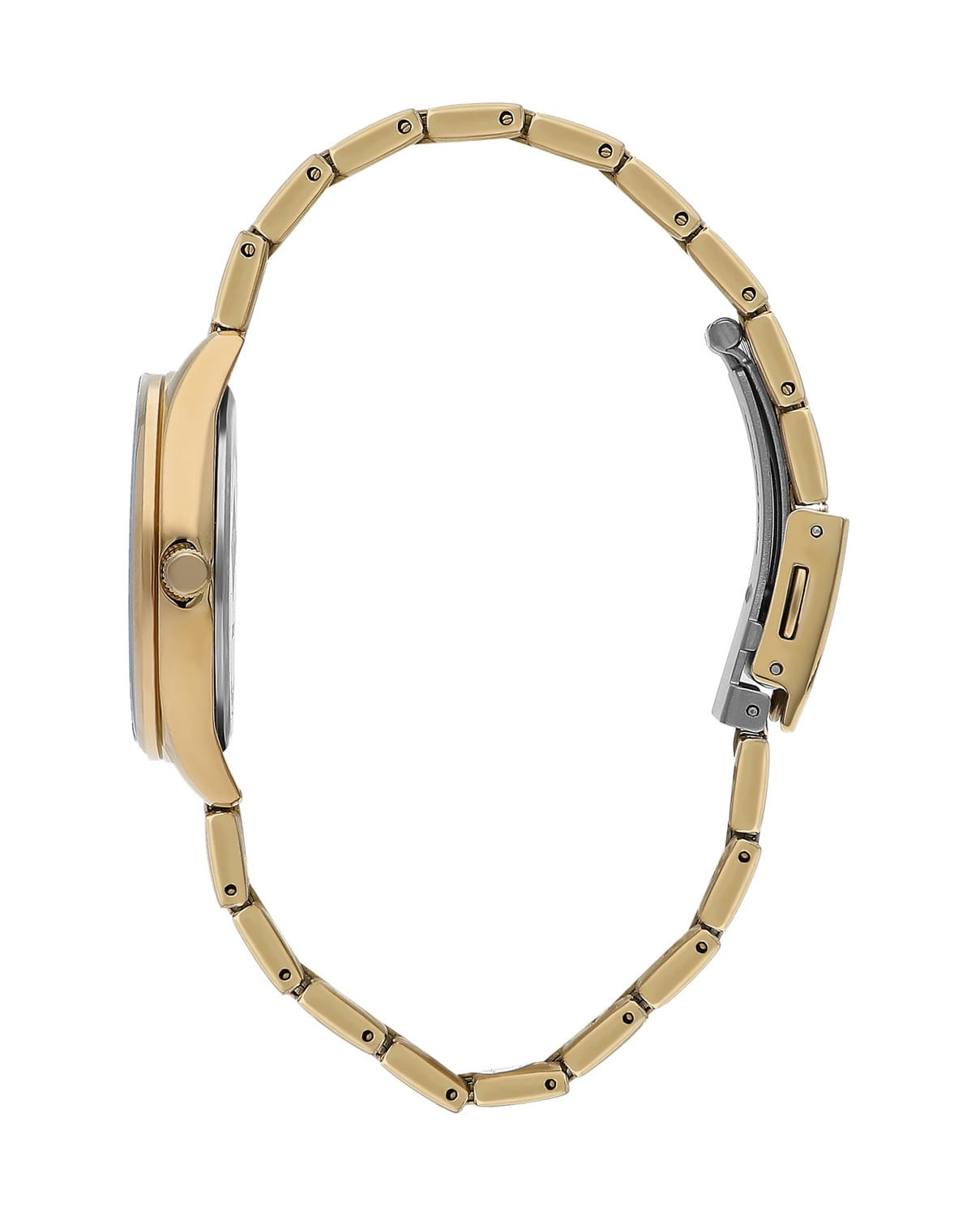 Женские часы Lee Cooper LC07832.120 выполнены в классическом стиле и сочетают строгий дизайн с надёжным механизмом. Модель оснащена кварцевым механизмом, обеспечивающим точность хода и минимальное обслуживание. Корпус круглой формы имеет размер 34 мм, изготовлен из суперметалла с IP-покрытиемIP-покрытиеМетод ионного напыления. Демонстрирует повышенную устойчивость к истиранию, окислению и химическим веществам. Под воздействием высокого давления и температуры около 1500°C молекулы металла надёжно соединяются с частицами корпуса часов., гарантирует комфорт при ношении. Циферблат дополнен изящными вставками из циркона для чёткого отсчёта времени. Защиту циферблата обеспечивает минеральное стеклоМинеральное стеклоМинеральное стекло представляет собой искусственно выращенный минерал кварца. Такое стекло отличается особой устойчивостью к повреждениям и царапинам. Уступает по некоторым качествам сапфировому стеклу., устойчивое к мелким механическим повреждениям. Стрелки с люминесцентным покрытиемЛюминесцентное покрытиеПозволяет считывать показания времени в темноте. Производители наносят на стрелки, часовые индексы, безель или поверхность циферблата светонакопительный состав, дающий холодное свечение.. Стальной браслет с IP-покрытиемIP-покрытиеМетод ионного напыления. Демонстрирует повышенную устойчивость к истиранию, окислению и химическим веществам. Под воздействием высокого давления и температуры около 1500°C молекулы металла надёжно соединяются с частицами корпуса часов. на раскладной застёжкеРаскладная застёжкаТакой тип застёжки используется только на браслетах из металла. Она никогда не раскрывается полностью, происходит разделение на 2 и более частей. Раскладывающая застёжка снизит вероятность потери часов к минимуму. гарантирует удобную посадку и надёжную фиксацию на запястье. Водозащита 30WR позволяет использовать часы в повседневных условиях без риска повреждения от случайных брызг воды. Это сочетание классического дизайна, прочности материалов и качества исполнения для уверенных в себе женщин.
