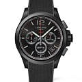 Черный ремешок из каучука стильно смотрится на запястье. Корпус выполнен из нержавеющей стали с PVD-покрытиемPVDУльтратонкое покрытие наносится в технике вакуумного напыления, сочетает в себе нитрид титана особой прочности со слоем золота или оксида хрома. Несёт в себе декоративную или защитную функцию.. Швейцарский кварцевый механизм L289 демонстрирует абсолютную точность хода. Сапфировое стекло имеет антибликовое покрытиеАнтибликовое покрытиеСлой оксида металла в 0,13-0,3 микрон, благодаря которому стекло часов не бликует и не отражает свет. Антибликовое покрытие уменьшает отражение света в 10 раз, обеспечивая отличную читаемость показателей циферблата.. Функции: вечный календарь, индикатор EOLEOLПредставляет собой систему, уведомляющую владельца часов о необходимости замены элемента питания. За 2 недели до полного разряда батарейки секундная стрелка перестаёт ходить чётко и начинает перепрыгивать на 3-4 деления., хронограф.