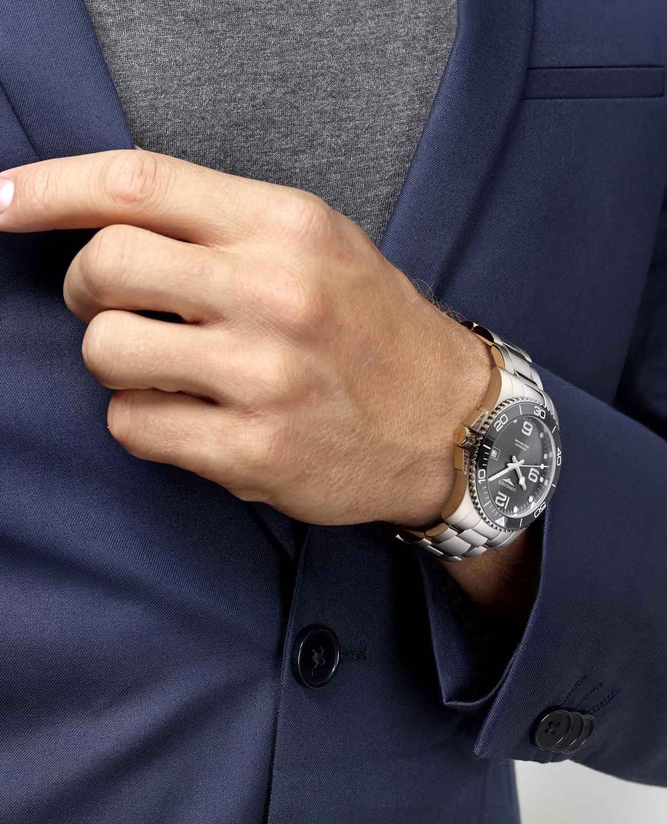 Часы Longines HydroConquest (артикул L37824766) сочетают элегантность с высокими техническими характеристиками, характерными для дайверских моделей. Корпус диаметром 43 мм выполнен из нержавеющей стали с водозащитой до 30 бар (300 метров). Однонаправленный вращающийся , завинчивающиеся заводная головка и задняя крышка подчёркивают надёжность. Серый циферблат с солнечным узором оснащён накладными арабскими цифрами и индексами с люминесцентным покрытием Swiss Super-LumiNova®Люминесцентное покрытиеПозволяет считывать показания времени в темноте. Производители наносят на стрелки, часовые индексы, безель или поверхность циферблата светонакопительный состав, дающий холодное свечение., стрелками с люминесцентным покрытиемЛюминесцентное покрытиеПозволяет считывать показания времени в темноте. Производители наносят на стрелки, часовые индексы, безель или поверхность циферблата светонакопительный состав, дающий холодное свечение., а также окошком даты в положении «3 часа». Циферблат защищён сапфировым стекломСапфировое стеклоПрочный и надёжный материал из кристалла сапфира синтетического происхождения, характеризующийся особой твёрдостью и устойчивостью к царапинам и повреждениям. с антибликовым покрытием.