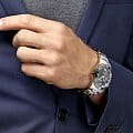 Браслет из нержавеющей стали оснащён двойной раскладывающейся застёжкойРаскладная застёжкаТакой тип застёжки используется только на браслетах из металла. Она никогда не раскрывается полностью, происходит разделение на 2 и более частей. Раскладывающая застёжка снизит вероятность потери часов к минимуму. и интегрированным удлинением для дайвингаУдлинение для дайверовЗастёжка с удлинением для дайверов представляет собой безопасное крепление, которое позволяет надевать часы поверх гидрокостюма. Гибкая застёжка удлиняется на 1-2 миллиметра..