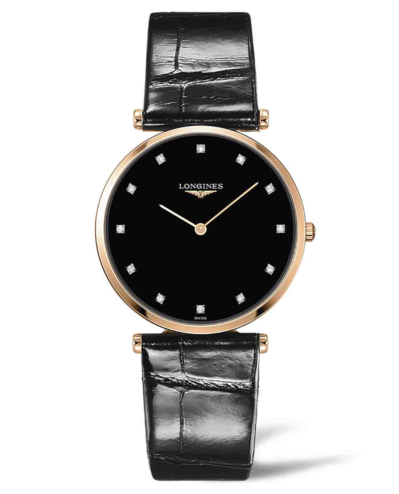 Компактный чёрный циферблат украшен 12 бриллиантами общим весом 0,081 карата. Элегантным дополнением стал ремешок из кожи аллигатора.PVD-покрытиеPVDУльтратонкое покрытие наносится в технике вакуумного напыления, сочетает в себе нитрид титана особой прочности со слоем золота или оксида хрома. Несёт в себе декоративную или защитную функцию. устойчиво к царапинам и износу. Швейцарский кварцевый калибр L420 обеспечивает высокую точность хода. Сапфировое стекло не допускает появления царапин на поверхности.
