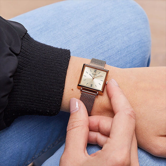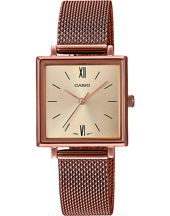 Японские женские часы Casio Collection LTP-E155MR-9B из коллекции Casio LTP изящно обрамляют запястье и добротно смотрятся с любым образом. Элегантный дизайн часов выдержан в стиле винтаж. Прочный квадратный корпус из нержавеющей стали надежно закреплен с изящным браслетом миланского плетения. На циферблате золотистого цвета аккуратно расположены временные отметки в виде штрихов и римских цифр. Защита часов обеспечивается прочным минеральным стеклом. Потеря аксессуара сведена к минимуму благодаря регулируемому креплению. На изделие нанесено защитное IP-покрытиеIP-покрытиеМетод ионного напыления. Демонстрирует повышенную устойчивость к истиранию, окислению и химическим веществам. Под воздействием высокого давления и температуры около 1500°C молекулы металла надёжно соединяются с частицами корпуса часов.. Тип механизма - кварцевый. Срок службы батарейки - 3 года.