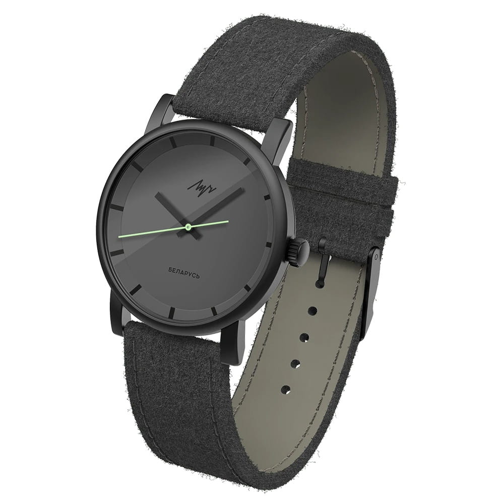 Мужские наручные часы Луч Blackout 2 778449724 — это стильное сочетание элегантности и современного дизайна. Круглый корпус диаметром 37.6 мм и толщиной 9.1 мм выполнен из нержавеющей стали с DLC-покрытиемDLC-покрытиеDiamond like carbon - одно из лучших видов покрытия, представляющее собой углерод с алмазными свойствами. На поверхность материала наносятся распавшиеся молекулы углерода, превращающиеся в плёнку из алмазоподобных связей, которая перенимает твёрдость алмаза. черного цвета, что придает модели особый изысканный вид. Циферблат защищен минеральном стекломМинеральное стеклоМинеральное стекло представляет собой искусственно выращенный минерал кварца. Такое стекло отличается особой устойчивостью к повреждениям и царапинам. Уступает по некоторым качествам сапфировому стеклу., обеспечивающим устойчивость к царапинам. Метки в виде штрихов. Часы оснащены кварцевым механизмом высокой точности, а ремешок из войлока на стандартной застёжке гарантирует комфортную посадку на запястье. Водозащита 30 метров позволит защитить корпус от случайных брызг или капель дождя. Луч — отличный выбор для тех, кто ценит утонченность и качество.