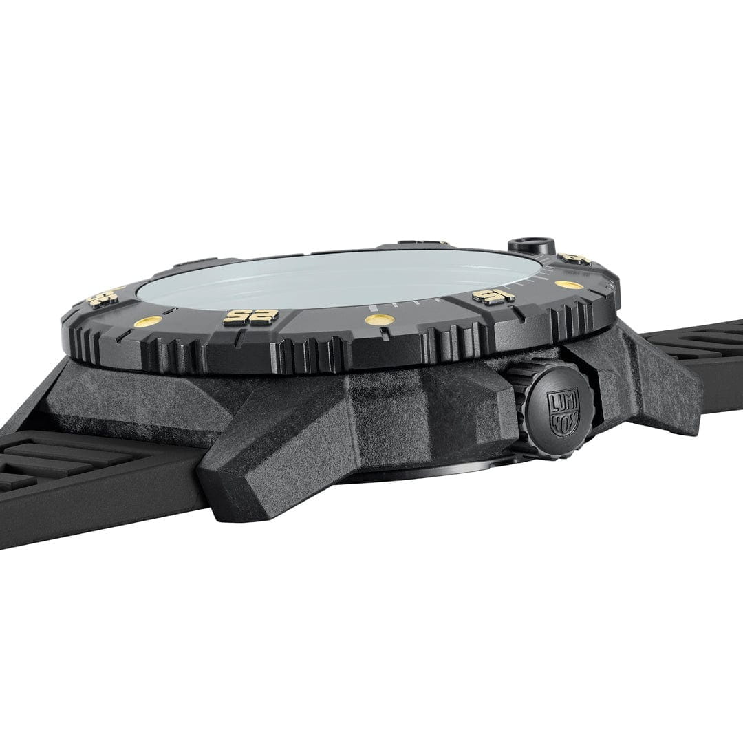 Luminox XS.3865.GOLD — это эксклюзивные швейцарские часы, которые представляют собой идеальное сочетание надежности и функциональности. Эти часы оснащены механизмом с автоподзаводом на базе калибра Sellita SW 220-1, содержащим 24 камня, что обеспечивает их точность и долговечность. Корпус изготовлен из прочного материала CARBONOX, который усилен прессованным карбоном, что придаёт часам легкость и устойчивость к внешним воздействиям. Черный циферблат украшен метками в виде штрихов и защищен сапфировым стекломСапфировое стеклоПрочный и надёжный материал из кристалла сапфира синтетического происхождения, характеризующийся особой твёрдостью и устойчивостью к царапинам и повреждениям. с антибликовым покрытиемАнтибликовое покрытиеСлой оксида металла в 0,13-0,3 микрон, благодаря которому стекло часов не бликует и не отражает свет. Антибликовое покрытие уменьшает отражение света в 10 раз, обеспечивая отличную читаемость показателей циферблата., что гарантирует отличную читаемость в любых условиях. Особая технология LLTLLTLLT — это автономный механизм подсветки, основанный на использовании микроскопических газонаполненных элементов. Специальные герметичные капсулы из боросиликатного стекла, интегрированные в циферблат, генерируют свечение без необходимости подключения к внешним источникам энергии. Для их работы не требуется ни дополнительный свет, ни механическое воздействие (например, нажатие кнопки). Свечение возникает благодаря химическому процессу: реакция между тритием, заключенным в капсулах, и люминофорным покрытием создает стабильное автономное освещение. Технология обеспечивает энергетическую независимость и долговечность подсветки.-подсветки позволяет без труда определять время в условиях полной темноты и будет сохранять свою функциональность на протяжении 25 лет. На циферблате расположены окошки даты и дня недели в положении 3 часа, что добавляет удобства в использовании. БезельБезельВнешний ободок, закрепляющий стекло. В спортивных часах так называется поворотное кольцо с делениями на циферблате, выполняет роль таймера – замеряет отрезки времени на шкале. Неподвижный безель – элемент декора. Однонаправленно вращающийся безель на дайверских часах позволяет фиксировать моменты погружения и выныривания на поверхность. часов вращается в одном направлении и оснащен светящейся меткой на 12 часов для дополнительной функциональности. Завинчивающаяся заводная головка с защитой и двойной уплотнительной прокладкой обеспечивает надежную герметичность, а задняя крышка из стали 316L, выполненная с прозрачным дизайном, позволяет увидеть внутренний механизм часов. Часы обладают впечатляющей водозащитой до 200 метров, что делает их отличным выбором для водных приключений. Каучуковый черный ремешок с раскладной застёжкойРаскладная застёжкаТакой тип застёжки используется только на браслетах из металла. Она никогда не раскрывается полностью, происходит разделение на 2 и более частей. Раскладывающая застёжка снизит вероятность потери часов к минимуму. и системой блокировки обеспечивает комфортное ношение и надежность. Также предусмотрена система быстрой замены ремешка, что позволяет легко адаптировать часы под ваш стиль.