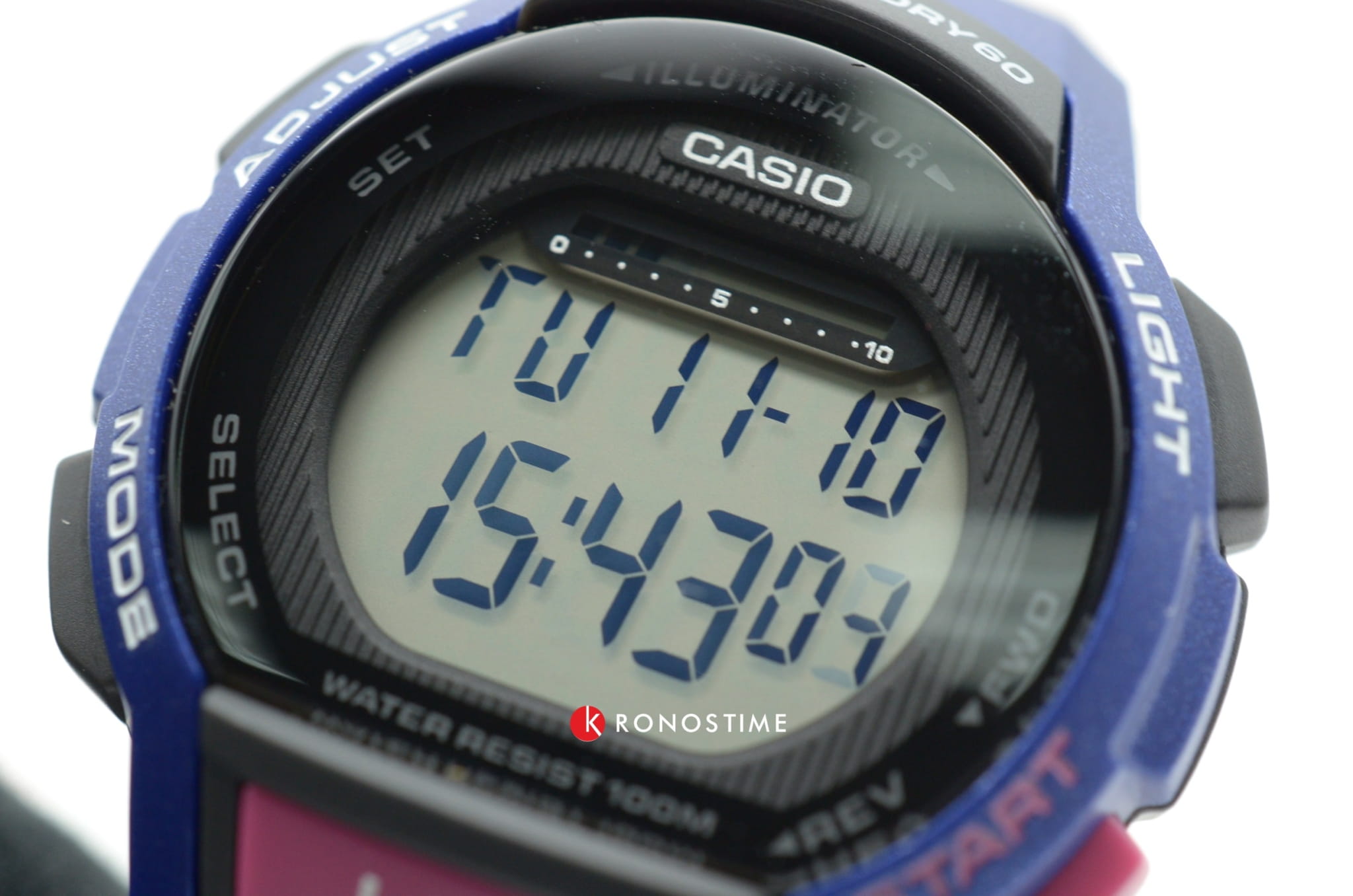 Стильные и компактные спортивные часы выполнены из прочных, высококачественных полимерных материалов. Аксессуар оснащен светодиодной подсветкойСветодиодная подсветкаСветодиодная или LED-подсветка обеспечивает появление яркого холодного свечения за счёт LED-элементов - маленьких лампочек. Они потребляют минимальное количество энергии, чаще всего можно встретить 1 светодиод, в нижней части циферблата.. Акриловое стекло надежно защищает изделие от повреждений. Высокоточные часы измеряют время с точностью в 1/100 секунды. Обладатель аксессуара может плавать с ним в воде - водонепроницаемость составляет 100 WR. Многофункциональный и незаменимый в спорте аксессуар оснащен таймером, 3 будильниками и автоматическим календарем. Вес часов равен 40 граммам.