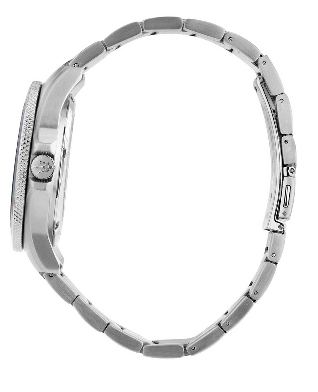 Мужские итальянские часы Maserati Competizione R8853100036, кварцевый механизм с высокой точностью. Корпус часов изготовлен из стали. БезельБезельВнешний ободок, закрепляющий стекло. В спортивных часах так называется поворотное кольцо с делениями на циферблате, выполняет роль таймера – замеряет отрезки времени на шкале. Неподвижный безель – элемент декора. Однонаправленно вращающийся безель на дайверских часах позволяет фиксировать моменты погружения и выныривания на поверхность. из стали с PVD-покрытиемPVDУльтратонкое покрытие наносится в технике вакуумного напыления, сочетает в себе нитрид титана особой прочности со слоем золота или оксида хрома. Несёт в себе декоративную или защитную функцию.. Стрелки с люминесцентным покрытиемЛюминесцентное покрытиеПозволяет считывать показания времени в темноте. Производители наносят на стрелки, часовые индексы, безель или поверхность циферблата светонакопительный состав, дающий холодное свечение.. Класс водозащиты: 100 метров, позволит плавать, нырять и заниматься другими водными видами спорта. Стальной браслет на раскладной застёжкойРаскладная застёжкаТакой тип застёжки используется только на браслетах из металла. Она никогда не раскрывается полностью, происходит разделение на 2 и более частей. Раскладывающая застёжка снизит вероятность потери часов к минимуму..