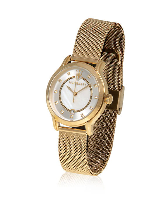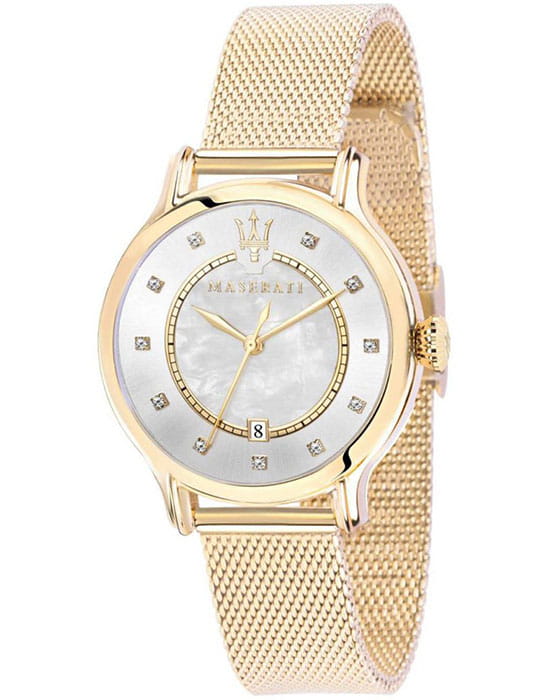 Женские американские часы Maserati R8853118502, кварцевый механизм с высокой точностью. Класс водозащиты: 100 метров, позволит плавать, нырять и заниматься другими водными видами спорта. Корпус часов изготовлен из стали, цвета.