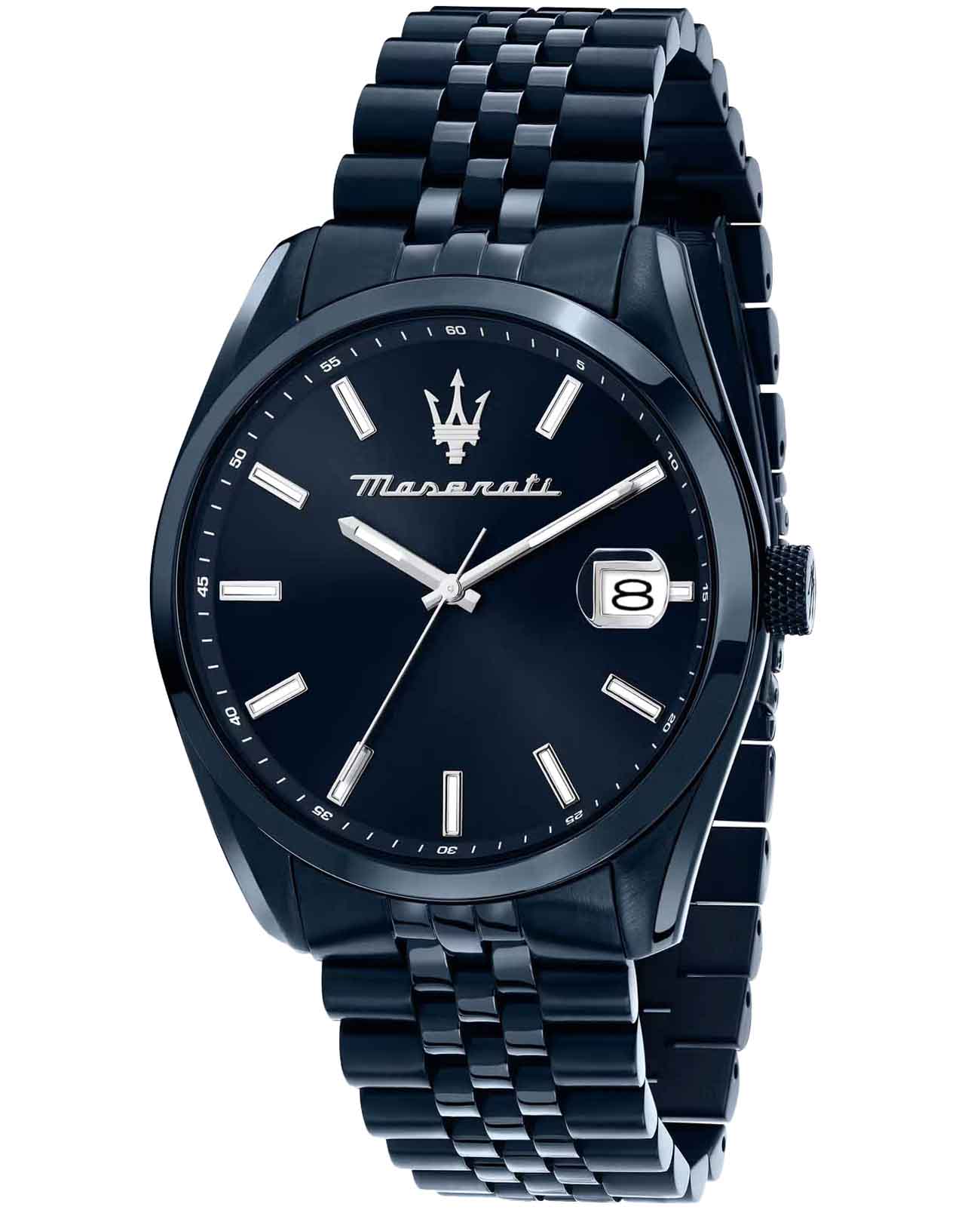 Мужские итальянские часы Maserati Attrazione R8853151016, кварцевый механизм с высокой точностью. Корпус часов изготовлен из стали с PVD-покрытиемPVDУльтратонкое покрытие наносится в технике вакуумного напыления, сочетает в себе нитрид титана особой прочности со слоем золота или оксида хрома. Несёт в себе декоративную или защитную функцию.. Стрелки с люминесцентным покрытиемЛюминесцентное покрытиеПозволяет считывать показания времени в темноте. Производители наносят на стрелки, часовые индексы, безель или поверхность циферблата светонакопительный состав, дающий холодное свечение.. Класс водозащиты: 50 метров, позволит защитить корпус от случайных брызг или капель дождя. Браслет с раскладной застёжкойРаскладная застёжкаТакой тип застёжки используется только на браслетах из металла. Она никогда не раскрывается полностью, происходит разделение на 2 и более частей. Раскладывающая застёжка снизит вероятность потери часов к минимуму. и с PVD-покрытиемPVDУльтратонкое покрытие наносится в технике вакуумного напыления, сочетает в себе нитрид титана особой прочности со слоем золота или оксида хрома. Несёт в себе декоративную или защитную функцию..