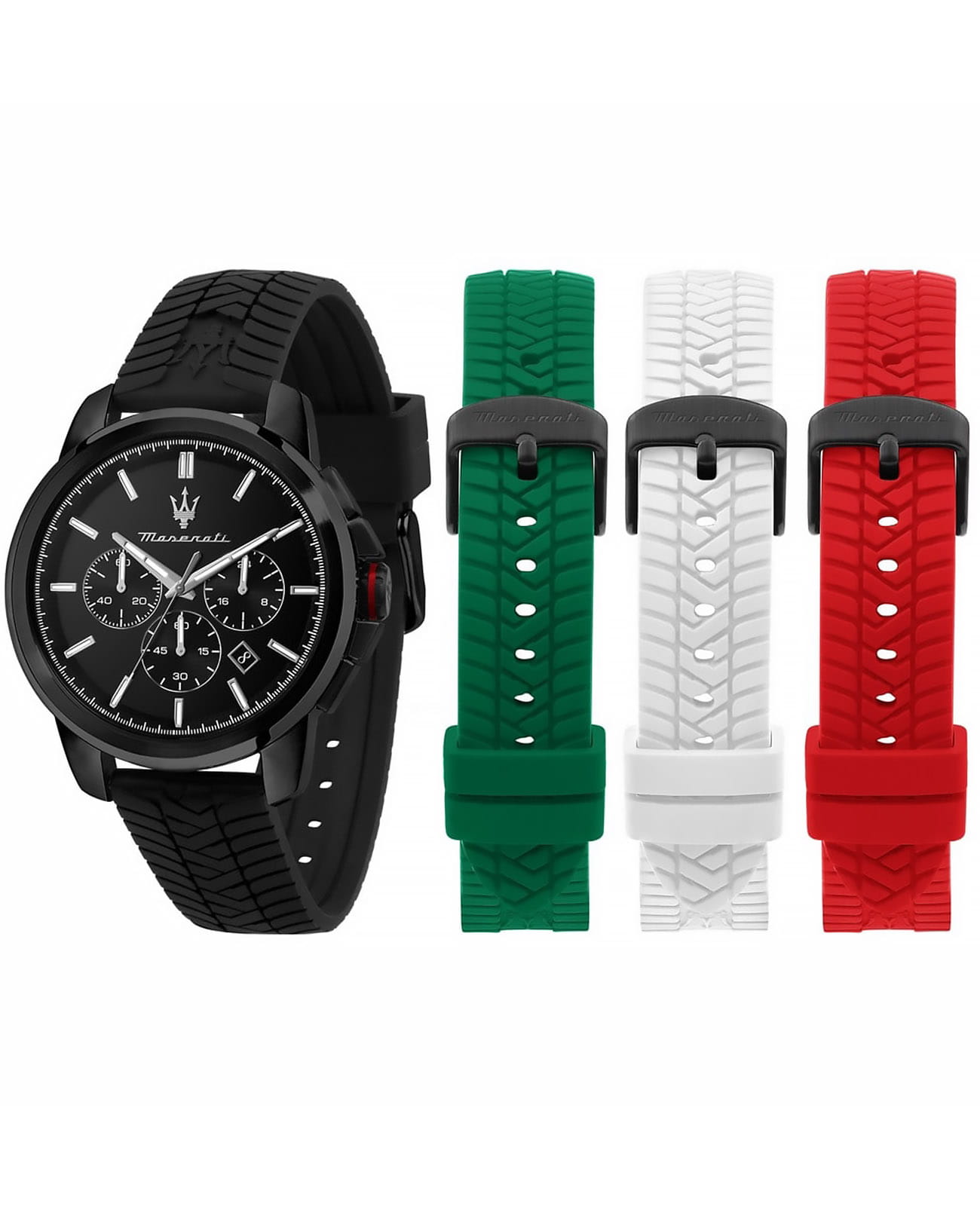Мужские наручные часы Maserati R8871648005, кварцевый механизм (автоматический калибр) с высокой точностью. 3 дополнительных ремешка в комплекте. Минеральное стеклоМинеральное стеклоМинеральное стекло представляет собой искусственно выращенный минерал кварца. Такое стекло отличается особой устойчивостью к повреждениям и царапинам. Уступает по некоторым качествам сапфировому стеклу. устойчивое к появлению царапин, обладающее высокой прозрачностью. Стрелки с люминесцентным покрытиемЛюминесцентное покрытиеПозволяет считывать показания времени в темноте. Производители наносят на стрелки, часовые индексы, безель или поверхность циферблата светонакопительный состав, дающий холодное свечение.. Класс водозащиты: 50 метров, позволит защитить корпус от случайных брызг или капель дождя. Корпус часов изготовлен из нержавеющей стали с PVD-покрытиемPVDУльтратонкое покрытие наносится в технике вакуумного напыления, сочетает в себе нитрид титана особой прочности со слоем золота или оксида хрома. Несёт в себе декоративную или защитную функцию.. Ремешок с классической застежкой.