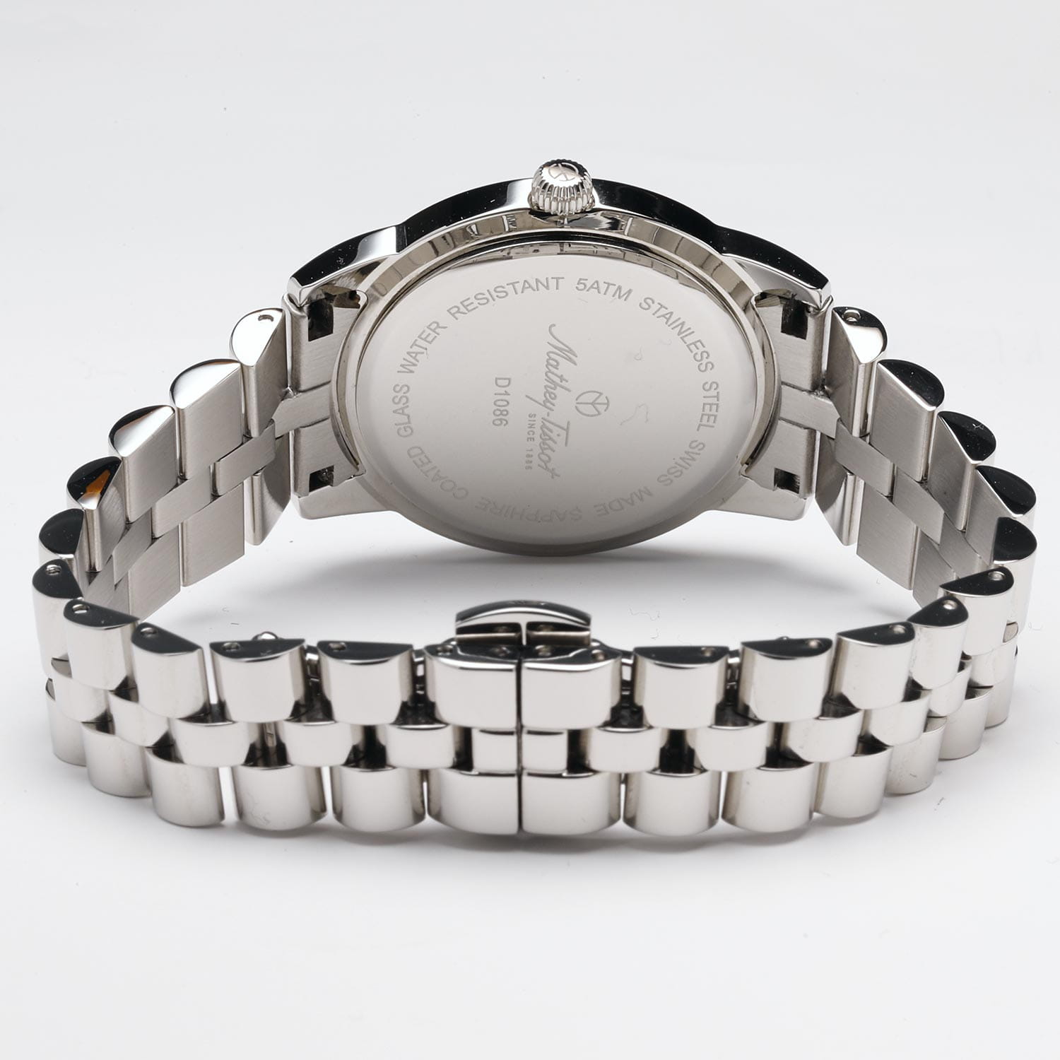 Женские кварцевые часы Mathey-Tissot Artemis D10860AV — это стильное сочетание элегантности и современного дизайна. Изящный корпус выполнен из стали 316L, что придаст образу женственности и романтизма. Изысканный циферблат с метками в виде штрихов придает модели особый блеск и защищен минеральным стекломМинеральное стеклоМинеральное стекло представляет собой искусственно выращенный минерал кварца. Такое стекло отличается особой устойчивостью к повреждениям и царапинам. Уступает по некоторым качествам сапфировому стеклу., обеспечивающим устойчивость к царапинам. Центральные часовая, минутная стрелки. Часы оснащены надежным кварцевым механизмом. Стальной браслет на застёжке-бабочке с кнопкамиЗастёжка "бабочка"Такой вид застёжки дополняется предохранителями, помогающими избежать случайного раскрытия браслета. Обладают изящным исполнением. , гарантирующего комфортное и безопасное ношение. Класс водозащиты: 30 метров позволит защитить корпус от случайных брызг или капель дождя. Mathey-Tissot — отличный выбор для тех, кто ценит утонченность и качество.