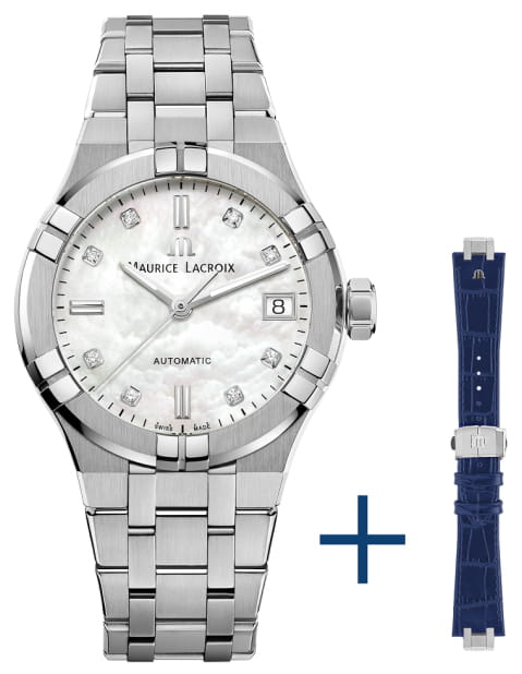 Женские швейцарские механические часы с бриллиантами с дополнительным ремешком Maurice Lacroix Aikon Automatic AI6006-SS002-170-3, механический механизм (автоматический калибр) с высокой точностью. Сапфировое стекло устойчивое к появлению царапин, обладающее высокой прозрачностью. Класс водозащиты: 200 метров, позволит плавать, нырять и заниматься другими водными видами спорта. Корпус часов изготовлен из стали, цвета.
