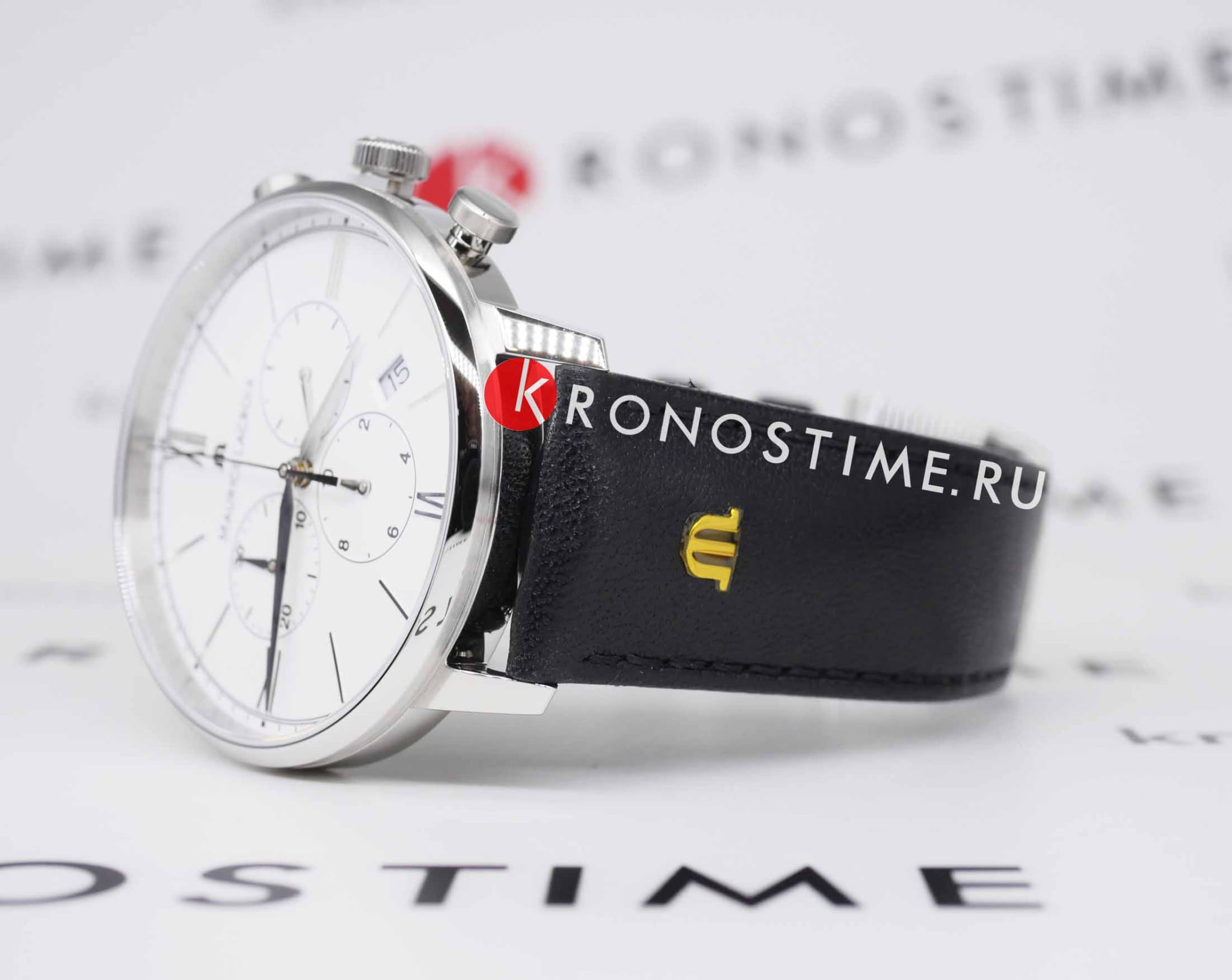 Швейцарский кварцевый хронограф Maurice Lacroix EL1098-SS001-110-2 из коллекции Eliros Chronograph — это стильный и функциональный аксессуар, сочетающий в себе сбалансированный дизайн и высокое качество исполнения. Модель оснащена точным кварцевым механизмом и хронографомХронографФункция позволяет измерять отрезки времени с особой точностью: часы, минуты, секунды. Верным признаком хронографа является наличие на циферблате 3 дополнительных окошек-счётчиков. с возможностью измерения времени до 30 минут с точностью 1/10 секунды. Секундная стрелка вынесена на отдельный циферблат в положении 3 часов, что делает показания визуально чёткими и удобными для восприятия. Циферблат белого цвета выполнен с лакированной поверхностью и дополнен штриховыми метками и римскими цифрами, что придаёт модели классическую элегантность. Защиту циферблата обеспечивает сапфировое стеклоСапфировое стеклоПрочный и надёжный материал из кристалла сапфира синтетического происхождения, характеризующийся особой твёрдостью и устойчивостью к царапинам и повреждениям. с двойным антибликовым покрытиемАнтибликовое покрытиеСлой оксида металла в 0,13-0,3 микрон, благодаря которому стекло часов не бликует и не отражает свет. Антибликовое покрытие уменьшает отражение света в 10 раз, обеспечивая отличную читаемость показателей циферблата., устойчивое к царапинам и обеспечивающее отличную читаемость при ярком солнечном свете. Окошко даты размещено между отметками 4 и 5 часов, что делает его легко доступным для восприятия. Заводная головка имеет рифлёную форму, что упрощает настройку времени и добавляет модели спортивный акцент. Часы водонепроницаемы до 50 метров (), что позволяет использовать их в повседневных условиях — при мытье рук или под лёгким дождём. Часы установлены на кожаный ремешок с логотипом «M» на застёжке, дополненный классической раскладной застёжкойРаскладной замокДанный вариант застежки используется только на часах с металлическим браслетом. Отличительная особенность такого крепления в том, что длина браслета становится универсальной и вы можете самостоятельно отрегулировать нужный вам размер – застежка просто двигается по браслету часов. для удобного и надёжного крепления на запястье. Ширина ремешка составляет 20 мм, а общий диаметр корпуса — 40 мм, что делает модель универсальной и комфортной при ношении. Maurice Lacroix уделяет внимание не только точности и дизайну, но и заботе об окружающей среде — упаковка часов изготовлена из переработанного океанического пластика. Эти часы станут идеальным выбором для тех, кто ценит сочетание стиля, технологичности и ответственности перед природой — универсальный аксессуар для повседневной носки и торжественных случаев.
