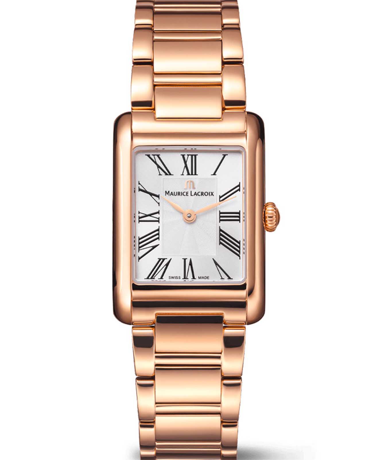 Швейцарские женские кварцевые часы Maurice Lacroix FA1205-PVP02-110-1 оснащены корпусом из нержавеющей стали с PVD-покрытиемPVDУльтратонкое покрытие наносится в технике вакуумного напыления, сочетает в себе нитрид титана особой прочности со слоем золота или оксида хрома. Несёт в себе декоративную или защитную функцию. размером 24 мм х 34 мм и защищены сапфировым стекломСапфировое стеклоПрочный и надёжный материал из кристалла сапфира синтетического происхождения, характеризующийся особой твёрдостью и устойчивостью к царапинам и повреждениям., устойчивым к мелким механическим повреждениям. Серебряный циферблат украшен часовыми индексами в виде цифр и стрелками, обеспечивающими функции отображения часов и минут. Часы имеют водонепроницаемость 50 метров, позволит защитить корпус от случайных брызг или капель дождя. Модель комплектуется браслетом из нержавеющей стали с PVD-покрытиемPVDУльтратонкое покрытие наносится в технике вакуумного напыления, сочетает в себе нитрид титана особой прочности со слоем золота или оксида хрома. Несёт в себе декоративную или защитную функцию. на раскладном замкеРаскладной замокДанный вариант застежки используется только на часах с металлическим браслетом. Отличительная особенность такого крепления в том, что длина браслета становится универсальной и вы можете самостоятельно отрегулировать нужный вам размер – застежка просто двигается по браслету часов.. Прочный корпус и надежный механизм гарантируют точность хода и долговечность использования. Дизайн и производство часов выполнены в Швейцарии, что подтверждает их высокое качество. Международная гарантия 2 года обеспечивает уверенность в надежности модели. Эти часы сочетают в себе элегантный дизайн и практичность, делая их универсальным аксессуаром для повседневного использования.