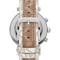 Встречайте этот ослепительный хронограф, усыпанный многочисленными кристаллами. Аксессуар для нежной и уверенной в себе леди. Часы-хронограф с секундомером. Круглый стальной корпус. Циферблат с узнаваемым принтом бренда и метками в виде штрихов. Окошко даты. Стальной безель декорирован паве из кристаллов. Ремешок из экокожи.
