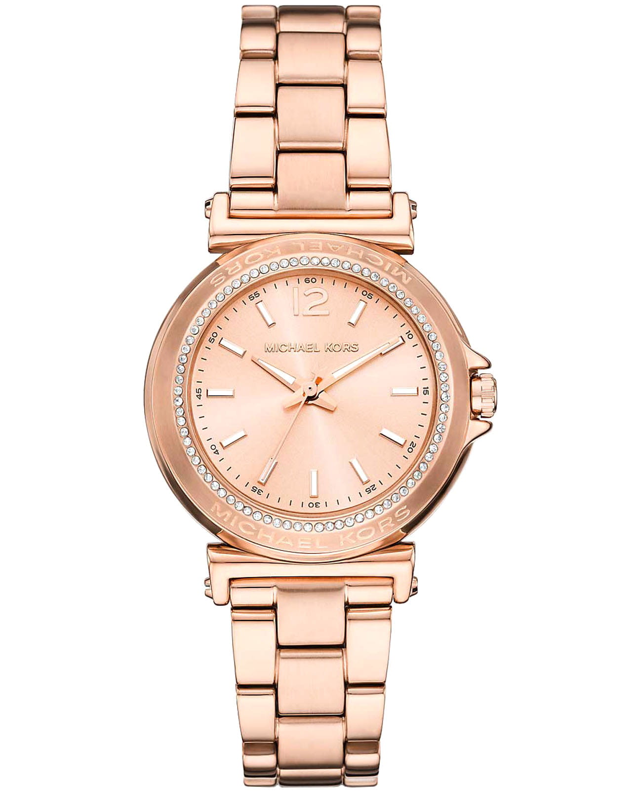 Откройте для себя сочетание современного стиля и функциональности в часах Michael Kors Maren MK7491 — потрясающих серебряных часах, созданных для женщин, которые ценят изысканность и утонченность. Эти часы легко дополнят любой образ и станут идеальным аксессуаром как для повседневного, так и для официального мероприятия. Кварцевый механизм с высокой точностью. Корпус часов изготовлен из нержавеющей стали с PVD-покрытиемPVDУльтратонкое покрытие наносится в технике вакуумного напыления, сочетает в себе нитрид титана особой прочности со слоем золота или оксида хрома. Несёт в себе декоративную или защитную функцию. цвета розового золота, диаметром 33 мм. БезельБезельВнешний ободок, закрепляющий стекло. В спортивных часах так называется поворотное кольцо с делениями на циферблате, выполняет роль таймера – замеряет отрезки времени на шкале. Неподвижный безель – элемент декора. Однонаправленно вращающийся безель на дайверских часах позволяет фиксировать моменты погружения и выныривания на поверхность. инкрустирован кристаллами. Циферблат с метками в виде штрихов и арабских цифр защищен минеральным стекломМинеральное стеклоМинеральное стекло представляет собой искусственно выращенный минерал кварца. Такое стекло отличается особой устойчивостью к повреждениям и царапинам. Уступает по некоторым качествам сапфировому стеклу., что обеспечивает надежную защиту от царапин и повреждений. Стрелки и метки с люминесцентным покрытиемЛюминесцентное покрытиеПозволяет считывать показания времени в темноте. Производители наносят на стрелки, часовые индексы, безель или поверхность циферблата светонакопительный состав, дающий холодное свечение.. Класс водозащиты: 50 метров позволит защитить корпус от случайных брызг или капель дождя. Удобный стальной браслет на раскладной застёжкеРаскладная застёжкаТакой тип застёжки используется только на браслетах из металла. Она никогда не раскрывается полностью, происходит разделение на 2 и более частей. Раскладывающая застёжка снизит вероятность потери часов к минимуму. обеспечивает надежную фиксацию на запястье и легкость в надевании и снятии. Рифленая заводная головка.