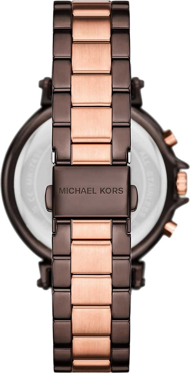 Часы Michael Kors MK7496 — это изысканный аксессуар, который станет прекрасным дополнением к вашему стилю. Эти женские часы-хронографХронографФункция позволяет измерять отрезки времени с особой точностью: часы, минуты, секунды. Верным признаком хронографа является наличие на циферблате 3 дополнительных окошек-счётчиков. с секундомеромСекундомерСекундоме́р — прибор, способный измерять интервалы времени с точностью до долей секунды. оснащены надежным кварцевым механизмом. Круглый корпус из стали с коричневым PVD-покрытиемPVDУльтратонкое покрытие наносится в технике вакуумного напыления, сочетает в себе нитрид титана особой прочности со слоем золота или оксида хрома. Несёт в себе декоративную или защитную функцию. придает изделию элегантность и современность. Циферблат, выполненный по технологии Sunray, создаёт эффект солнечных лучей, а его коричневый оттенок добавляет нежности и утонченности. Минутная шкала, расположенная по краю циферблата, и метки в виде штрихов с арабской цифрой 12 обеспечивают удобство в использовании. Часы поддерживают как 12-ти, так и 24-х часовой формат времени, что делает их функциональными и практичными. Окошко календаря, находящееся между отметками 4 и 5 часов, позволяет всегда быть в курсе текущей даты. БезельБезельВнешний ободок, закрепляющий стекло. В спортивных часах так называется поворотное кольцо с делениями на циферблате, выполняет роль таймера – замеряет отрезки времени на шкале. Неподвижный безель – элемент декора. Однонаправленно вращающийся безель на дайверских часах позволяет фиксировать моменты погружения и выныривания на поверхность. украшен логотипом бренда Michael Kors, подчёркивая престиж и качество изделия. Минеральное стеклоМинеральное стеклоМинеральное стекло представляет собой искусственно выращенный минерал кварца. Такое стекло отличается особой устойчивостью к повреждениям и царапинам. Уступает по некоторым качествам сапфировому стеклу. защищает циферблат от внешних воздействий. Заводная головка с защитой обеспечивает дополнительную надежность. Стальной браслет с золотисто-розовым и коричневым PVD-покрытиемPVDУльтратонкое покрытие наносится в технике вакуумного напыления, сочетает в себе нитрид титана особой прочности со слоем золота или оксида хрома. Несёт в себе декоративную или защитную функцию. и раскладной застёжкойРаскладная застёжкаТакой тип застёжки используется только на браслетах из металла. Она никогда не раскрывается полностью, происходит разделение на 2 и более частей. Раскладывающая застёжка снизит вероятность потери часов к минимуму. обеспечивает комфорт и безопасность при ношении. Водозащита 50WR позволяет использовать часы в различных условиях, не опасаясь случайных контактов с водой. Этот аксессуар идеально подходит для тех, кто ценит стиль и функциональность в своих повседневных спутниках.