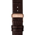 Часы Mido Baroncelli Big Date M027.426.36.018.00 — это элегантный мужской аксессуар, сочетающий классический дизайн и современные технологии. Корпус диаметром 40 мм выполнен из нержавеющей стали с розовым PVD-покрытиемPVDУльтратонкое покрытие наносится в технике вакуумного напыления, сочетает в себе нитрид титана особой прочности со слоем золота или оксида хрома. Несёт в себе декоративную или защитную функцию., что придаёт часам утончённый вид. Белый циферблат с римскими цифрами и стрелками защищён сапфировым стекломСапфировое стеклоПрочный и надёжный материал из кристалла сапфира синтетического происхождения, характеризующийся особой твёрдостью и устойчивостью к царапинам и повреждениям. с двойным антибликовым покрытиемАнтибликовое покрытиеСлой оксида металла в 0,13-0,3 микрон, благодаря которому стекло часов не бликует и не отражает свет. Антибликовое покрытие уменьшает отражение света в 10 раз, обеспечивая отличную читаемость показателей циферблата., устойчивым к царапинам и бликам.