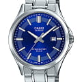 Японские мужские кварцевые часы с сапфировым стекломСапфировое стеклоПрочный и надёжный материал из кристалла сапфира синтетического происхождения, характеризующийся особой твёрдостью и устойчивостью к царапинам и повреждениям. Casio Collection MTS-100D-2A, кварцевый механизм с высокой точностью. Корпус и барслет часов изготовлены из нержавеющей. Подсветка NeobriteПодсветка NeobriteИспользование светонакопительных составов на основе сульфида цинка или алюмината стронция, яркий свет можно наблюдать на протяжении 6-10 часов после «зарядки» часов около источника света. обеспечивает длительное послесвечение в темноте даже после кратковременного нахождения на свету. Окошко даты находится в положении 3 часа. Батарея рассчитана на 10 лет. Заводная головка с защитой. Задняя крышка с винтовым фиксатором. Класс водозащиты: 50 метров, позволит защитить корпус от случайных брызг или капель дождя. Стальной браслет на раскладной застёжкеРаскладная застёжкаТакой тип застёжки используется только на браслетах из металла. Она никогда не раскрывается полностью, происходит разделение на 2 и более частей. Раскладывающая застёжка снизит вероятность потери часов к минимуму..