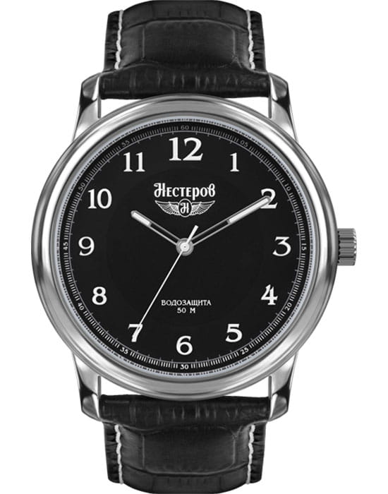 Модель Нестеров H0282B02-01E — это гармоничное сочетание классического дизайна и надёжности, вдохновлённое авиационной тематикой. Корпус диаметром 44 мм выполнен из нержавеющей стали, подчёркивая прочность и элегантность конструкции. Чёрный циферблат с арабскими цифрами и стрелками, покрытыми люминесцентным покрытиемЛюминесцентное покрытиеПозволяет считывать показания времени в темноте. Производители наносят на стрелки, часовые индексы, безель или поверхность циферблата светонакопительный состав, дающий холодное свечение., обеспечивает отличную читаемость в любых условиях.