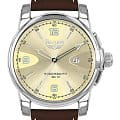 Ремешок выполнен из натуральной кожи коричневого цвета, обеспечивая комфорт при носке. Толщина корпуса составляет 13 мм, что придаёт часам солидный вид.