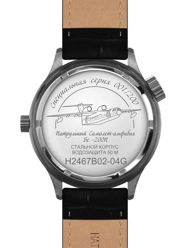 Ремешок выполнен из натуральной кожи чёрного цвета, обеспечивая комфорт при носке.  Толщина корпуса составляет 14 мм, что придаёт часам солидный вид.