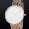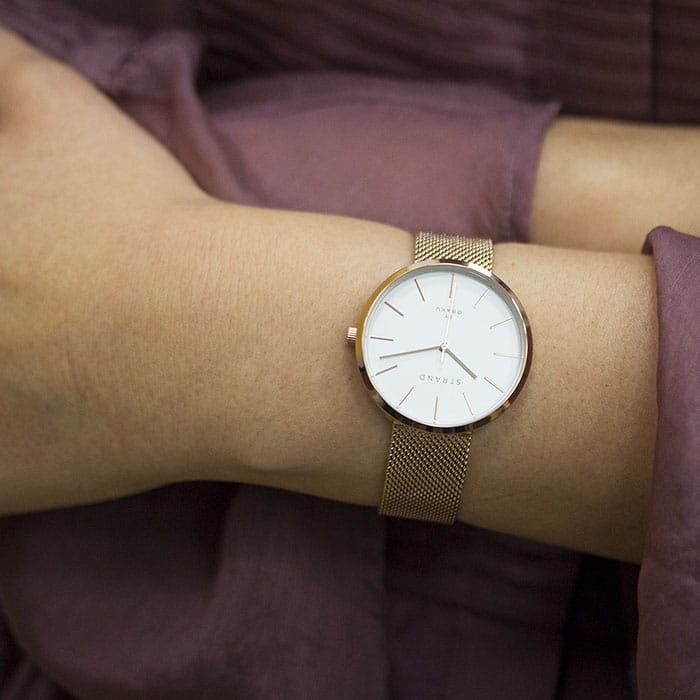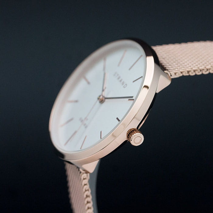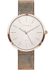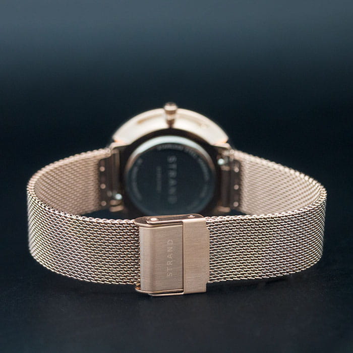 Часы соответствуют минималистичному стремлению, отражая скандинавскую лаконичность. Золотисто-розовая расцветка сохраняет актуальность. Японский кварцевый калибр Miyota. Батарейка не содержит свинца, ртути. Стальной браслет миланского плетения. IP-покрытиеIP-покрытиеМетод ионного напыления. Демонстрирует повышенную устойчивость к истиранию, окислению и химическим веществам. Под воздействием высокого давления и температуры около 1500°C молекулы металла надёжно соединяются с частицами корпуса часов.. Прочное минеральное стекло. Водостойкость WR 30.