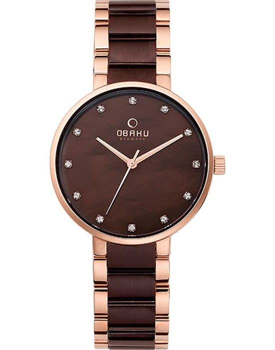 Женские часы Obaku - в изысканном и утонченном стиле  всегда современны и неотразимы.  Циферблат украшен кристаллами Swarovski.