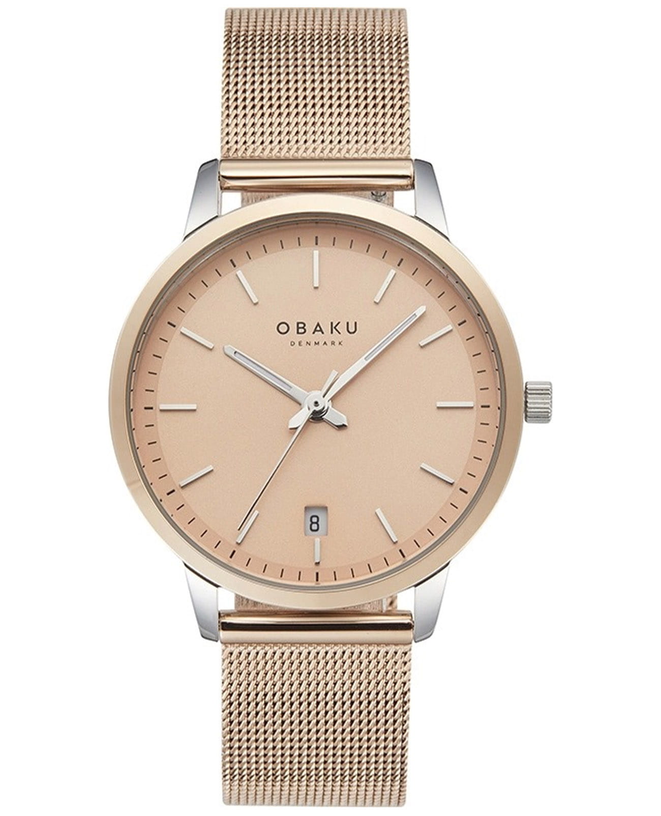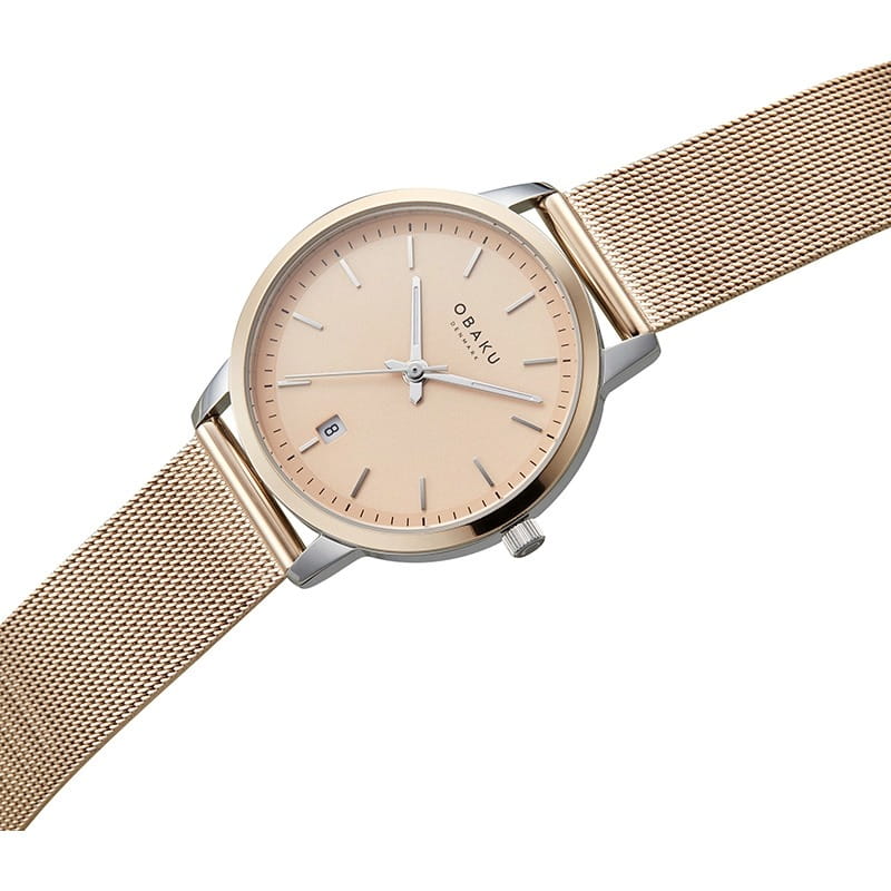 Женские кварцевые часы в классическом стиле Obaku Salvie V270LDZVMV, кварцевый механизм с высокой точностью. Класс водозащиты: 30 метров, позволит защитить корпус от случайных брызг или капель дождя. Корпус часов изготовлен из стали с частичным IP-покрытиемIP-покрытиеМетод ионного напыления. Демонстрирует повышенную устойчивость к истиранию, окислению и химическим веществам. Под воздействием высокого давления и температуры около 1500°C молекулы металла надёжно соединяются с частицами корпуса часов.. Апертура даты в позиции 6 часов. Золотисто-розовый циферблат.  Стальной браслет с IP-покрытиемIP-покрытиеМетод ионного напыления. Демонстрирует повышенную устойчивость к истиранию, окислению и химическим веществам. Под воздействием высокого давления и температуры около 1500°C молекулы металла надёжно соединяются с частицами корпуса часов. выполнен в технике миланского плетения, раскладная застёжкаРаскладная застёжкаТакой тип застёжки используется только на браслетах из металла. Она никогда не раскрывается полностью, происходит разделение на 2 и более частей. Раскладывающая застёжка снизит вероятность потери часов к минимуму.. Прочное минеральное стеклоМинеральное стеклоМинеральное стекло представляет собой искусственно выращенный минерал кварца. Такое стекло отличается особой устойчивостью к повреждениям и царапинам. Уступает по некоторым качествам сапфировому стеклу. устойчивое к мелким механическим повреждениям.