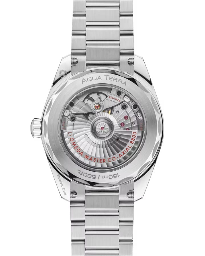 Omega Seamaster Aqua Terra выполнены в симметричном корпусе из нержавеющей стали с завинчивающейся задней крышкой. Циферблат дополнен окошком даты на 6 часах. Стрелки и метки оснащены люминесцентным покрытиемЛюминесцентное покрытиеПозволяет считывать показания времени в темноте. Производители наносят на стрелки, часовые индексы, безель или поверхность циферблата светонакопительный состав, дающий холодное свечение. Super-LumiNova для лучшей читаемости в темноте. Калибр Omega 8800 сертифицирован как Master Chronometer — гарантия высочайшей точности и устойчивости к магнитным полям. Запас хода составляет 55 часов. Защиту циферблата обеспечивает сапфировое стеклоСапфировое стеклоПрочный и надёжный материал из кристалла сапфира синтетического происхождения, характеризующийся особой твёрдостью и устойчивостью к царапинам и повреждениям. с антибликовым покрытиемАнтибликовое покрытиеСлой оксида металла в 0,13-0,3 микрон, благодаря которому стекло часов не бликует и не отражает свет. Антибликовое покрытие уменьшает отражение света в 10 раз, обеспечивая отличную читаемость показателей циферблата. с обеих сторон. Водозащита позволяет использовать часы в воде без риска повреждения. Часы установлены на полированный и матовый браслет. Это сочетание премиального качества, технологичности и классического дизайна.