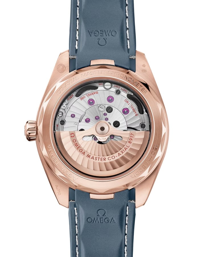 Мужские наручные часы Omega Seamaster Aqua Terra выполнены в корпусе из нержавеющей стали и 18К Sedna™ золота , диаметром 41 мм , толщиной 13,2 мм , ширина между ушками — 20 мм , общий вес составляет около 151 граммов .Циферблат с горизонтальным узором «тиковое дерево» имеет окошко даты в положении 6 часов и дополнительный циферблат малой секундной стрелки с черным кольцом. Стрелки и индексы выполнены из 18К Sedna™ золота и покрыты белым люминесцентным составом Super-LumiNovaЛюминесцентное покрытиеПозволяет считывать показания времени в темноте. Производители наносят на стрелки, часовые индексы, безель или поверхность циферблата светонакопительный состав, дающий холодное свечение., обеспечивающим читаемость в темноте. Минутная шкала и малый циферблат дополнительно обработаны пескоструйным методом для повышения контраста. Стекло — выпуклое сапфировое стекло сапфировое стеклоСапфировое стеклоПрочный и надёжный материал из кристалла сапфира синтетического происхождения, характеризующийся особой твёрдостью и устойчивостью к царапинам и повреждениям. с двусторонним антибликовым покрытием антибликовое покрытиеАнтибликовое покрытиеСлой оксида металла в 0,13-0,3 микрон, благодаря которому стекло часов не бликует и не отражает свет. Антибликовое покрытие уменьшает отражение света в 10 раз, обеспечивая отличную читаемость показателей циферблата., задняя крышка прозрачная, украшена волнообразным узором. Механизм — механический с автоподзаводом , калибр OMEGA Master Chronometer 8917, сертифицированный METAS и COSC. Обладает запасом хода до 60 часов , антимагнитными свойствами и точностью от 0 до +5 секунд в сутки благодаря коаксиальному спуску и балансу из кремния. Мосты и платина механизма имеют родиевое покрытие и декор Женевские волны. Водозащита — 15 АТМ (150 метров) , что позволяет использовать часы в воде, включая плавание и дайвинг. Часы оснащены каучуковым ремешком, застёжка — раскладная, с двойной системой блокировки. Это технологичная модель для делового и активного образа жизни, сочетающая морское наследие, швейцарское качество и современные стандарты.