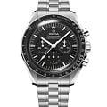 Speedmaster Moonwatch – культовые часы, заслужившие мировое признание. Шесть миссий на Луну сделали их символом новаторского духа OMEGA. Moonwatch представлены с пятизвенным браслетом с матовой отделкой и 42-миллиметровым корпусом из нержавеющей стали. На лицевой стороне установлено хезалитовое стекло, а задняя крышка украшена рельефным изображением морского конька. Дизайн повторяет черты Speedmaster 4-го поколения - первых часов на Луне. Асимметричный корпус сочетается с черным многоуровневым циферблатом и характерной точкой у отметки 90 на безелеБезельВнешний ободок, закрепляющий стекло. В спортивных часах так называется поворотное кольцо с делениями на циферблате, выполняет роль таймера – замеряет отрезки времени на шкале. Неподвижный безель – элемент декора. Однонаправленно вращающийся безель на дайверских часах позволяет фиксировать моменты погружения и выныривания на поверхность. из анодированного алюминия. В основе - механизм OMEGA Co-Axial Master Chronometer 3861, управляющий счетчиком малой секундной стрелки, 30-минутным и 12-часовым счетчиками, а также центральной хронографнойХронографФункция позволяет измерять отрезки времени с особой точностью: часы, минуты, секунды. Верным признаком хронографа является наличие на циферблате 3 дополнительных окошек-счётчиков. стрелкой.