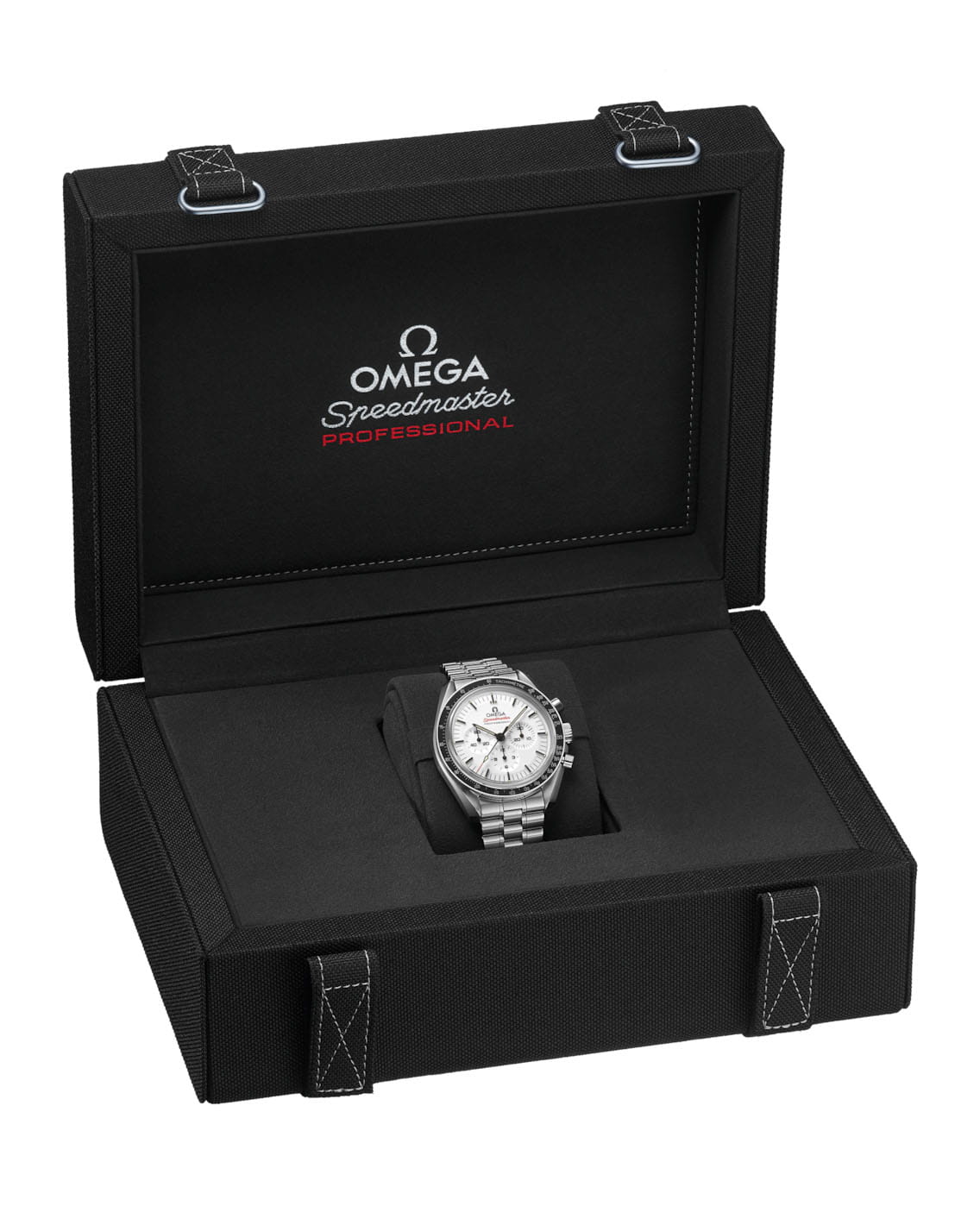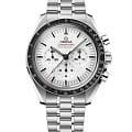 Часы Speedmaster Moonwatch — легендарный хронограф, ставший символом космических достижений. Эти 42-миллиметровые часы из нержавеющей стали на браслете с полированной отделкой оснащены сапфировым стекломСапфировое стеклоПрочный и надёжный материал из кристалла сапфира синтетического происхождения, характеризующийся особой твёрдостью и устойчивостью к царапинам и повреждениям. спереди и на задней крышке. Вдохновленные моделью Speedmaster четвертого поколения, они повторяют асимметричный корпус, белый лакированный ступенчатый циферблат с накладным логотипом OMEGA и индексами, стрелки в стиле Moonwatch, а также кольцо безеляБезельВнешний ободок, закрепляющий стекло. В спортивных часах так называется поворотное кольцо с делениями на циферблате, выполняет роль таймера – замеряет отрезки времени на шкале. Неподвижный безель – элемент декора. Однонаправленно вращающийся безель на дайверских часах позволяет фиксировать моменты погружения и выныривания на поверхность. из черного анодированного алюминия. В сердце часов бьется коаксиальный хронометр OMEGA 3861 Master Chronometer, управляющий малым секундным циферблатом, 30-минутным и 12-часовым рекордерами, а также центральной функцией хронографа.
